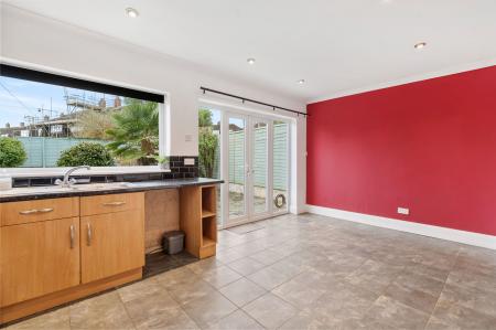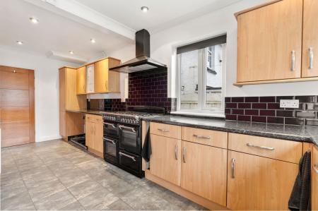 An excellent kitchen with a fantastic range of wall and base cupboards with drawers and worktops over. Feature pantry cupboard. Large Stoves Range cooker with gas hob and extractor fan over. Space and plumbing for washing machine. Space and plumbing for dishwasher. Space and power for tumble dryer. Worcester gas combi boiler. Stainless steel sink with mixer tap over. Dual aspect kitchen with UVPC double glazed window to side and rear and double glazed French doors opening onto the rear patio. Radiator.