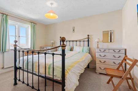 Built-in double wardrobe, radiator, window with pleasant views of Roughtor and Brown Willy in the distance, with glimpses towards the town over the rooftops. Arch to