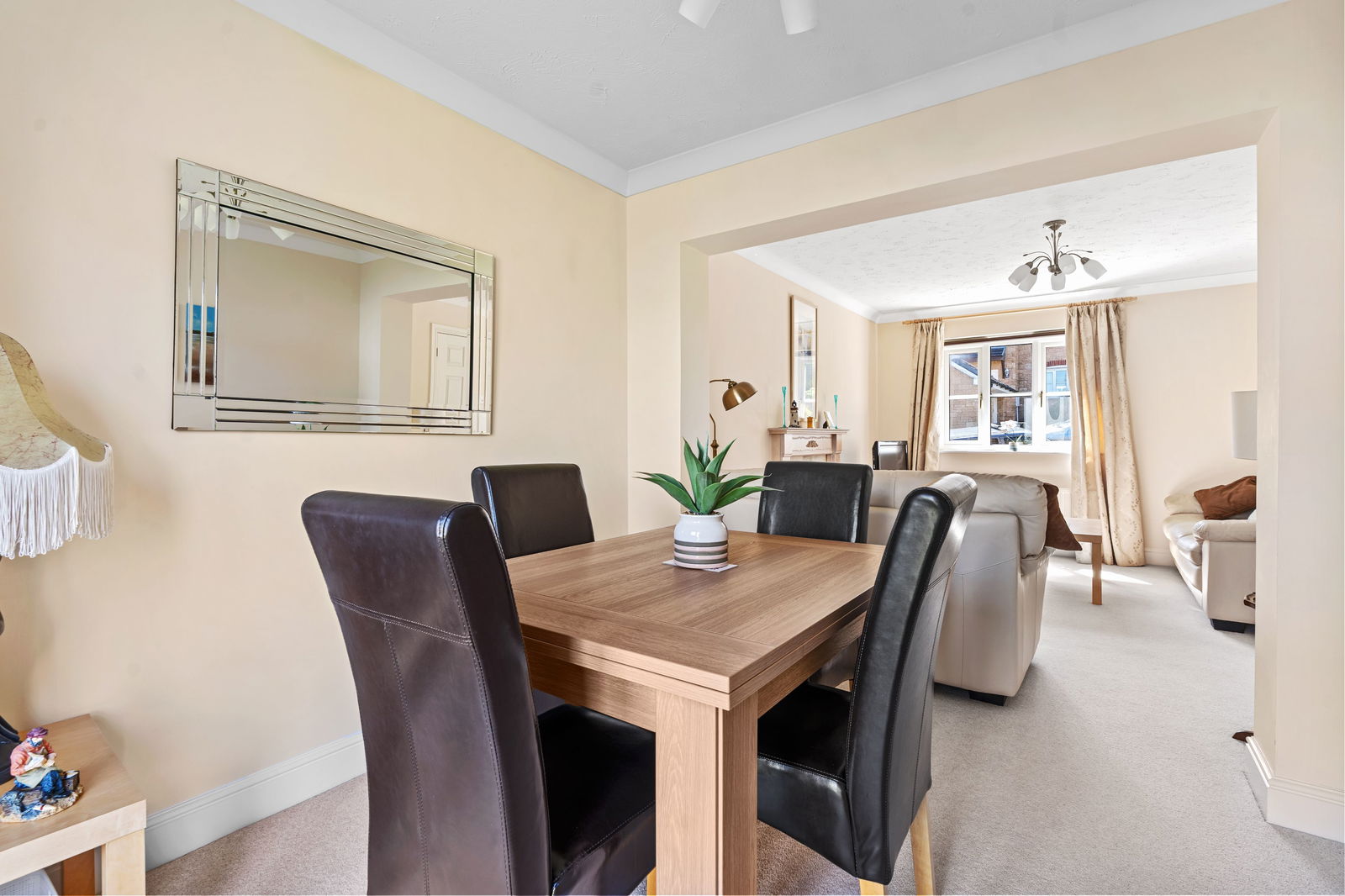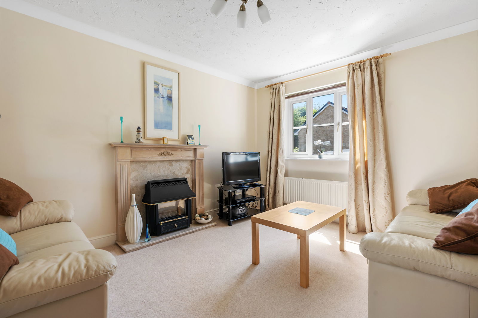 Window to front, radiator, attractive fireplace surround with gas flame effect fire, opening through to