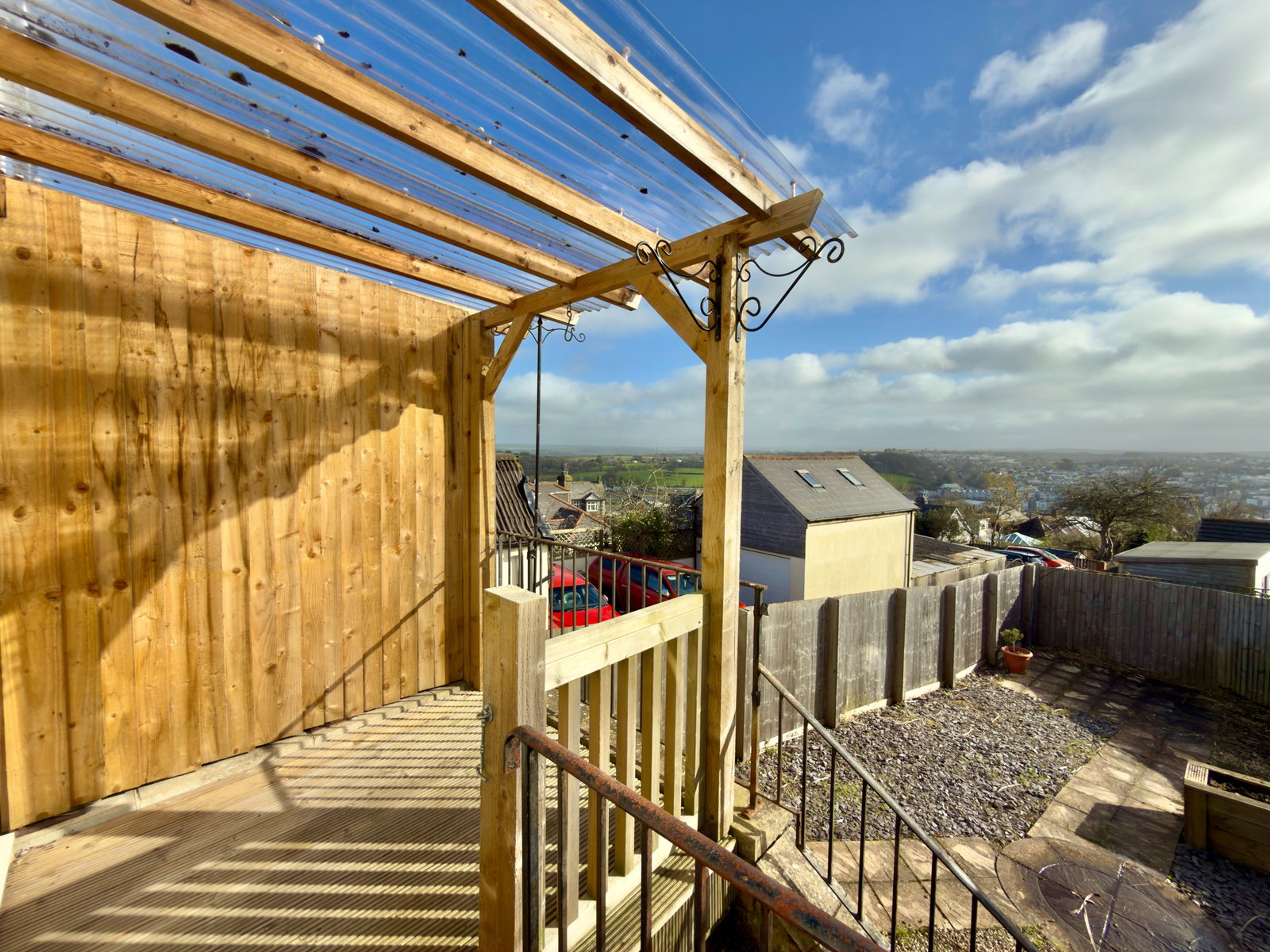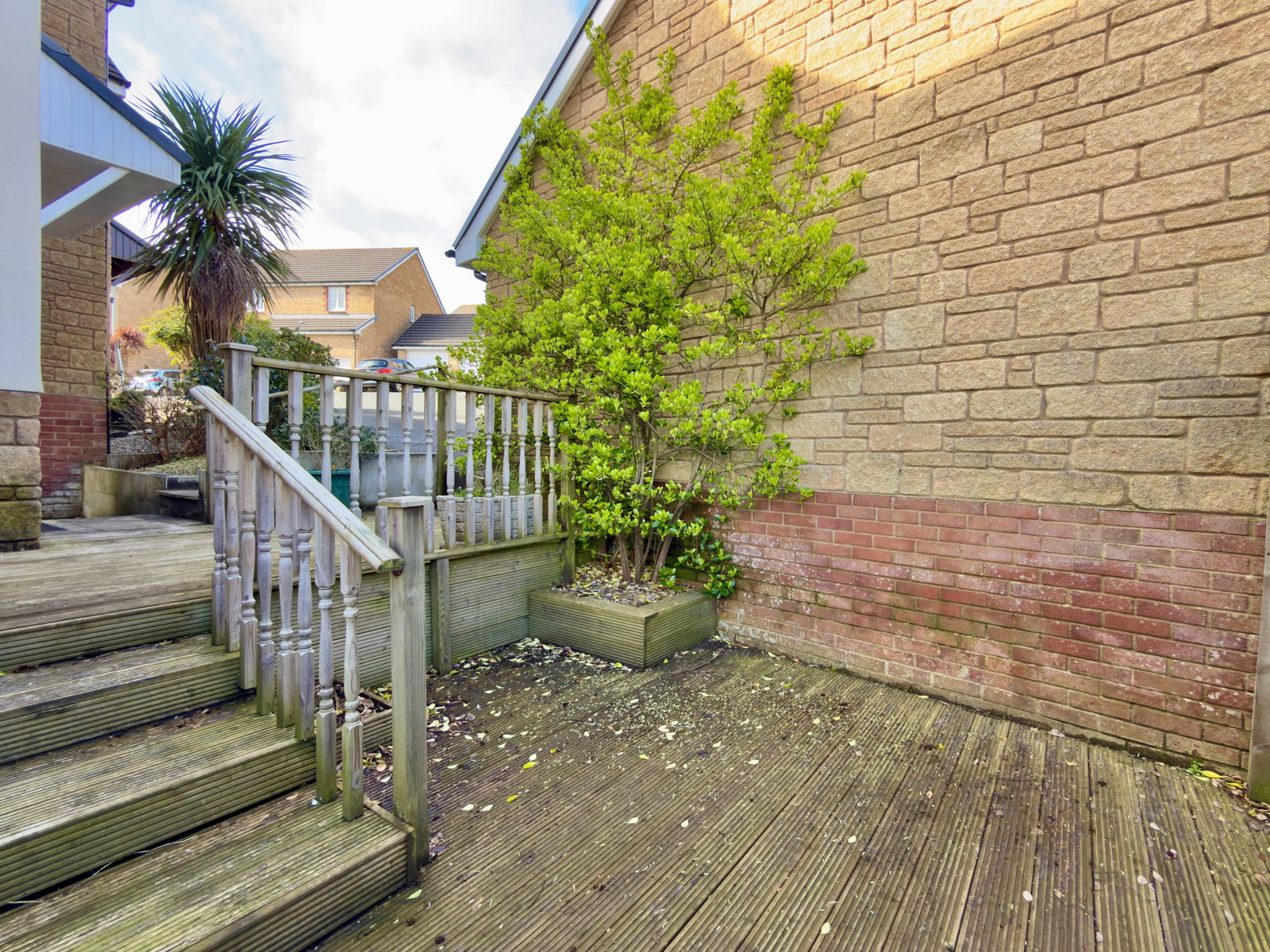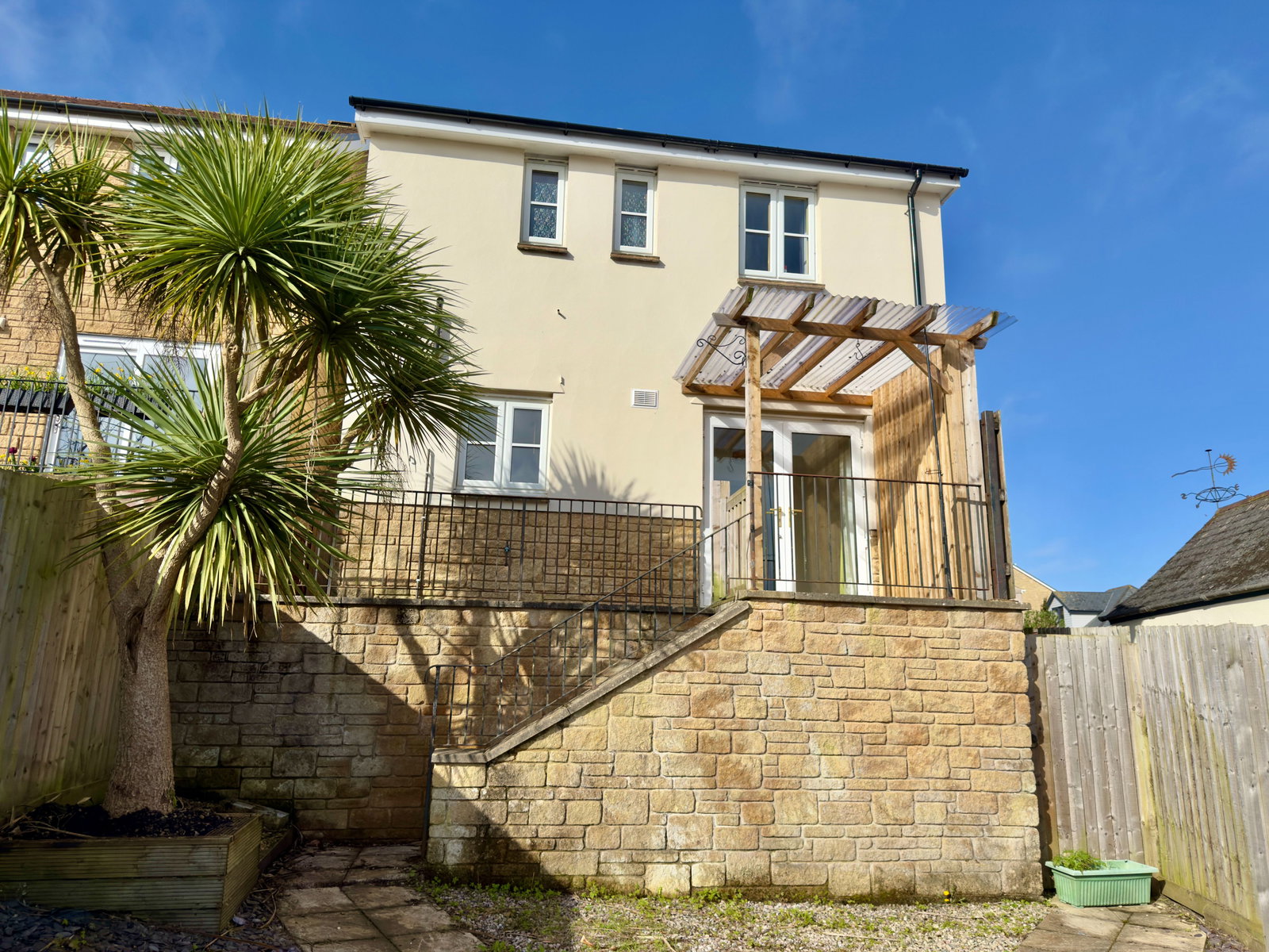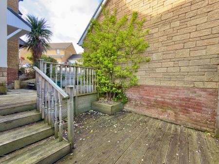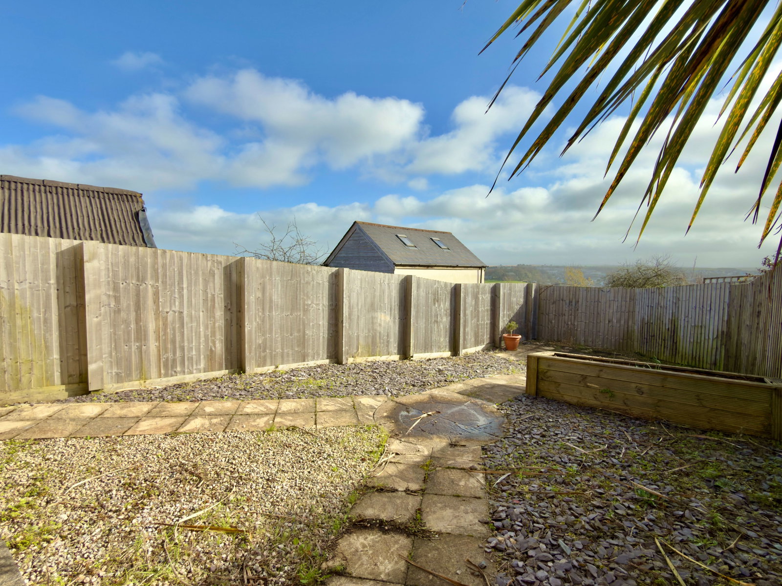 Path to both sides with gated access to rear garden. A path leads to upper decking which again enjoys some fantastic views over Wadebridge town, countryside and River Camel. Outside tap. Steps lead down to lower garden which is a very low maintenance spacious and sunny garden with paving, gravelled chippings and slate chippings with a patio area at the bottom perfect for entertaining. Built-in planter and attractive palm tree.