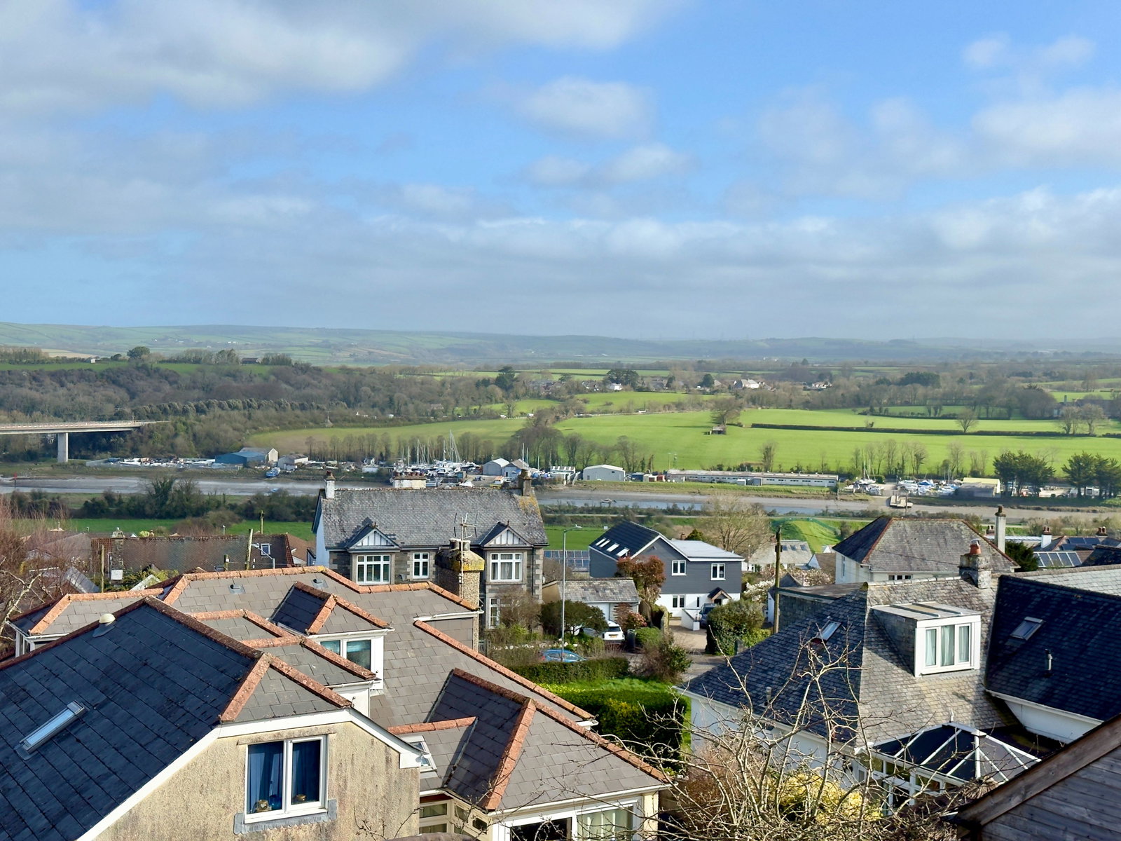 Radiator, double glazed French doors opening onto rear decking enjoying some fantastic views across Wadebridge town and countryside beyond.