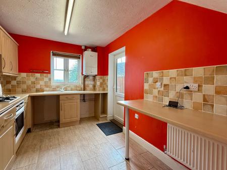 Fitted kitchen with a good range of wall and base cupboards with drawers and worktops over, integral oven with 4 ring gas hob over and extractor fan, sink with mixer tap, gas fired Worcester combi boiler, space and plumbing for washing machine, space and power for fridge, breakfast bar, radiator, UPVC double glazed window to rear framing lovely views over Wadebridge town and countryside beyond stretching towards Roughtor and Brown Willy, UPVC double glazed door to side.