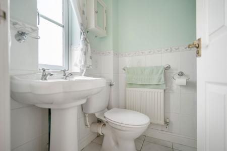 Fully tiled comprising shower cubicle, low level W.C., wash hand basin, opaque UPVC double glazed window to front, radiator.