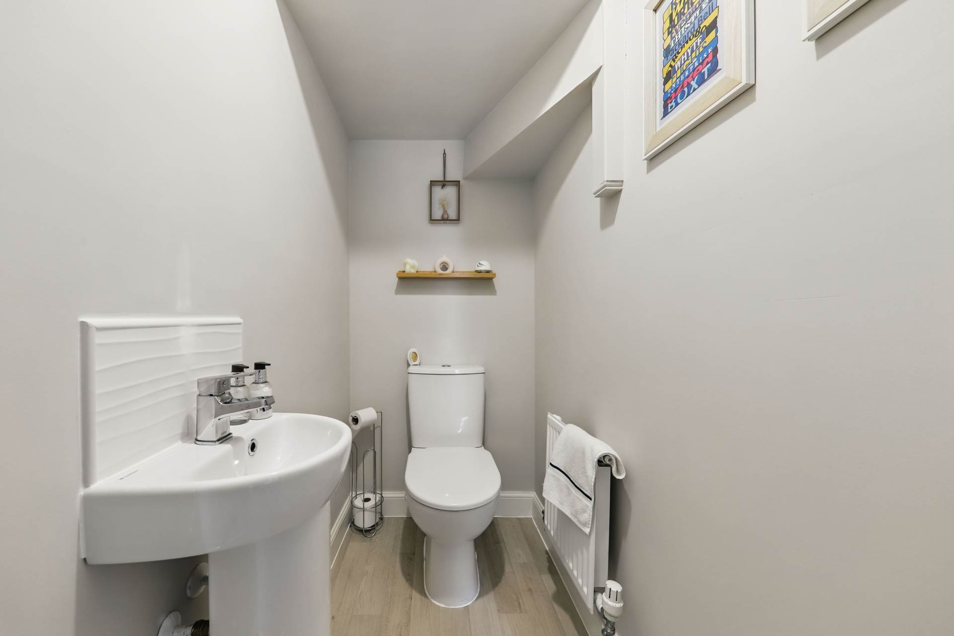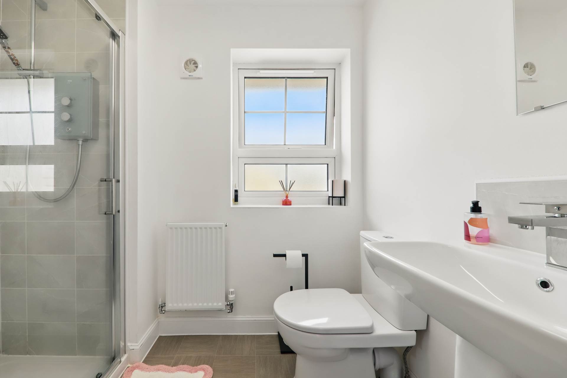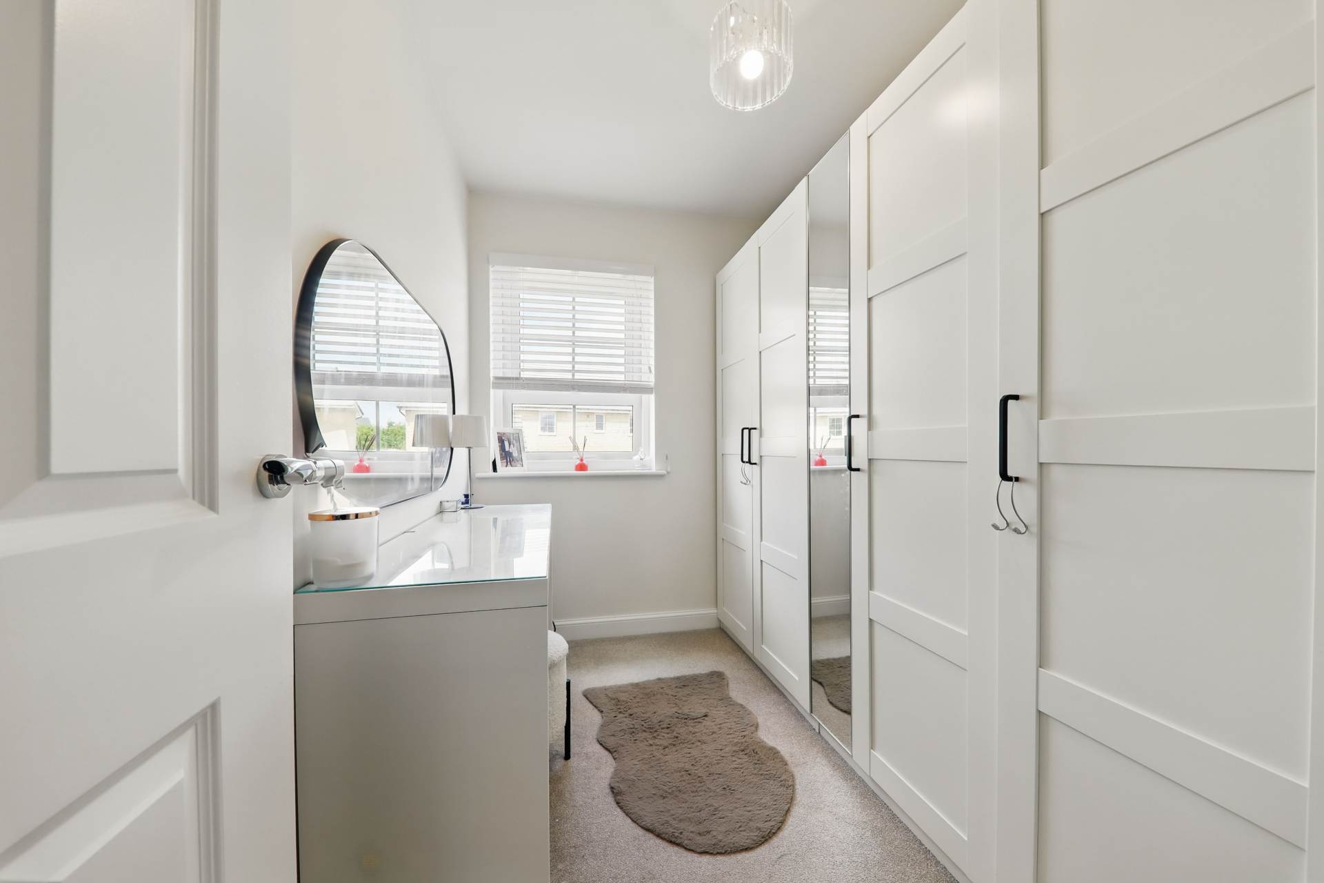 Upstairs, the first floor hosts three well sized bedrooms. The master bedroom enjoys the luxury of a modern en-suite shower room. The second bedroom is another generous double, while the third bedroom is currently being used as a dressing room but can easily be adapted to suit a variety of needs. Completing the first floor is the stylish three-piece family bathroom, finished with contemporary fittings and a clean, neutral design.