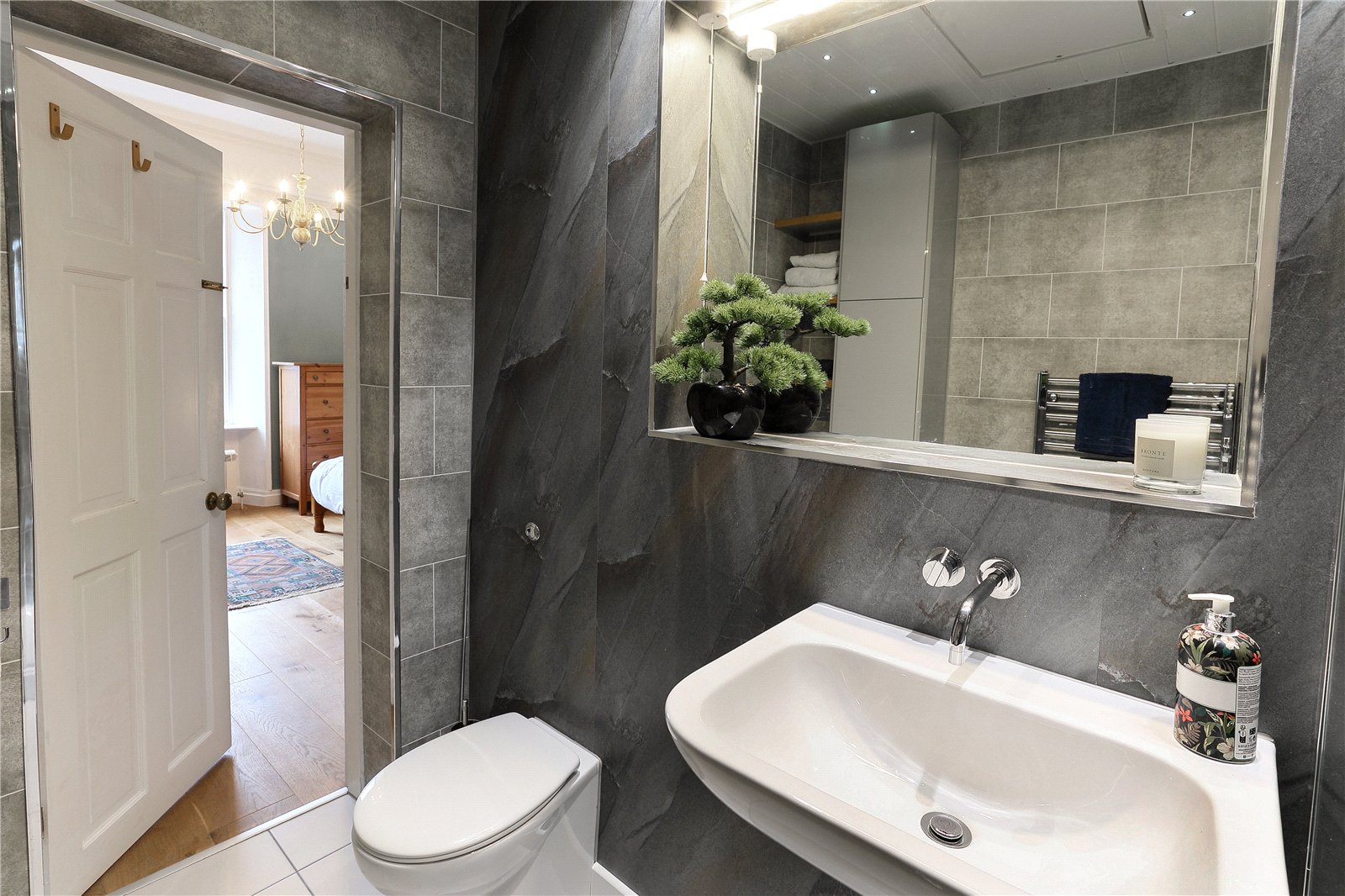 Holroyd Miller have pleasure in offering for sale this stunning first floor apartment forming part of this impressive Grade Two Listed Georgian town house, occupying an eviable position on the Square overlooking the Church. Not only has the property been superbly presented throughout and maintained, the communal hallways have also been refurbished with new carpets and redecoration. A truly enviable home for those looking for a low maintenance apartment in a period setting but offering a move with a minimum of fuss. The property briefly comprises ground floor communal entrance with intercom system leading to private reception hallway with oak flooring, impressive living room with sash windows, feature Adam style fire place with open grate for open fire, recess shelving, a light and airy room superbly appointed kitchen with a modern range of units with contrasting oak worktops, a comprehensive range of built in appliances, generous bedroom with south facing views with oak flooring, sash windows and built in storage, ensuite shower room, adjacent to the property is a separate utility room with an automatic washing machine and recently refitted central heating boiler. The property has access to communal gardens and private parking together with permit parking for two vehicles. The property occupies a convenient position within walking distance of Wakefield city centre and its excellent range of amenities together with Wakefield Westgate train station ideal for those travelling to either Leeds, London or Edinburgh. Offered with No Chain. Viewing Essential.