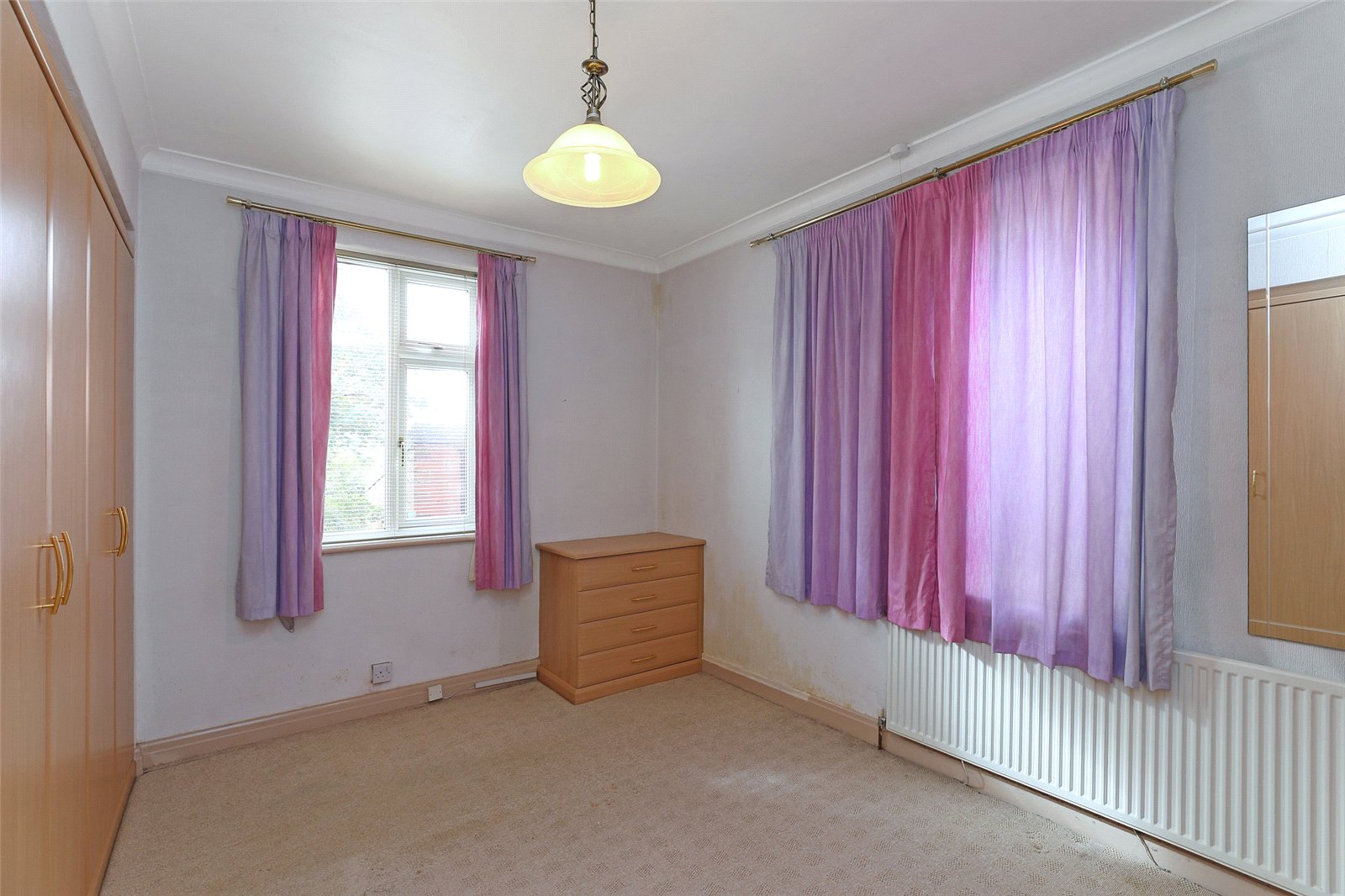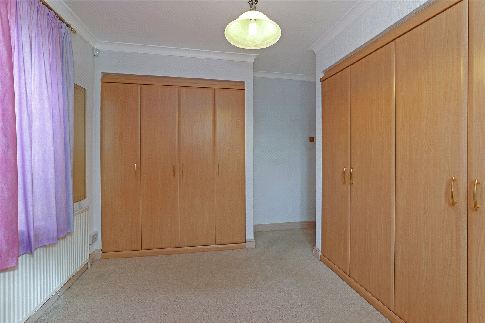 Bedroom to Rear 13'4" x 10'7" (4.06m x 3.23m). Having two sets of fitted wardrobes in light oak, dual aspect double glazed windows, single panel radiator.