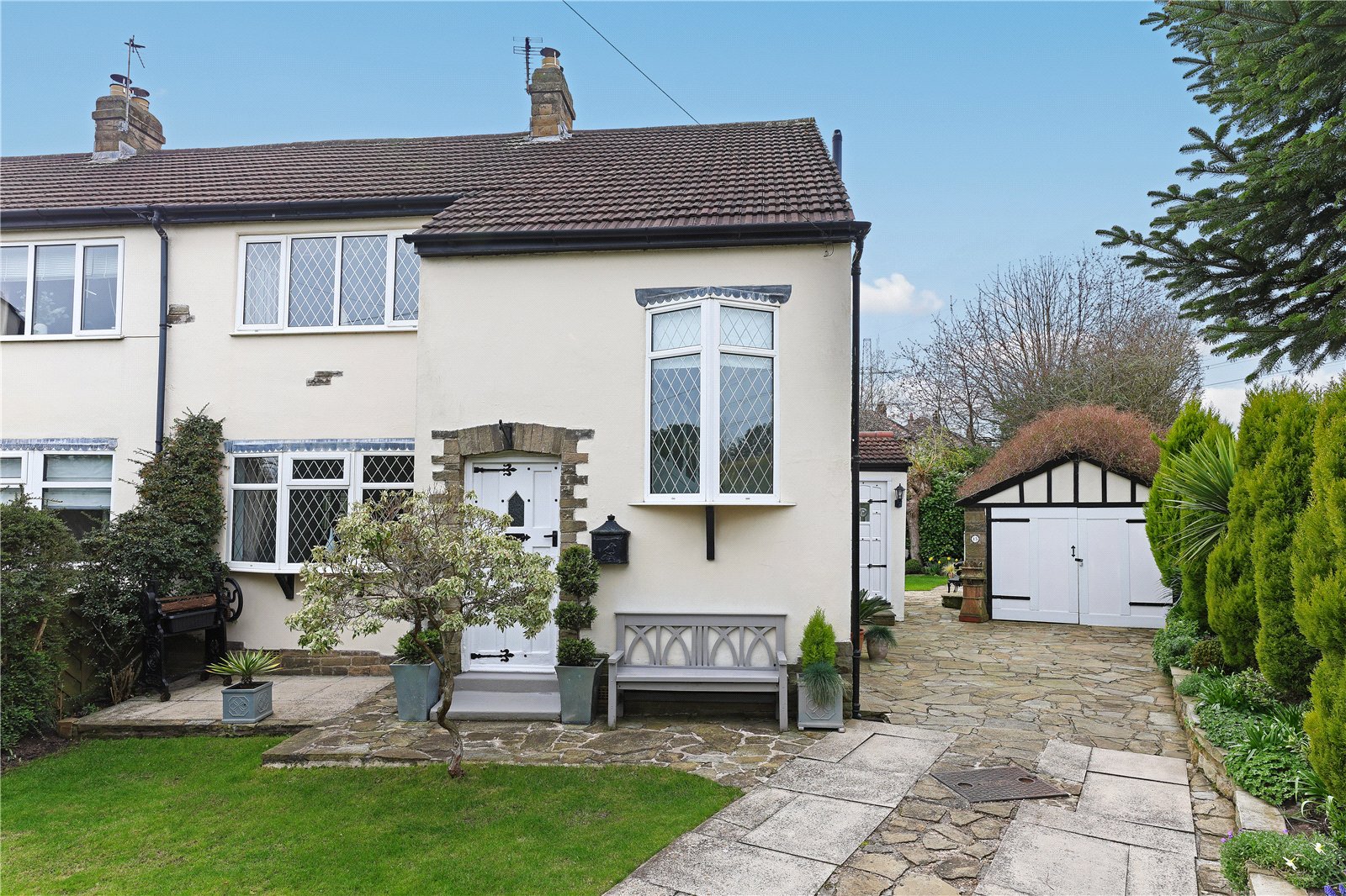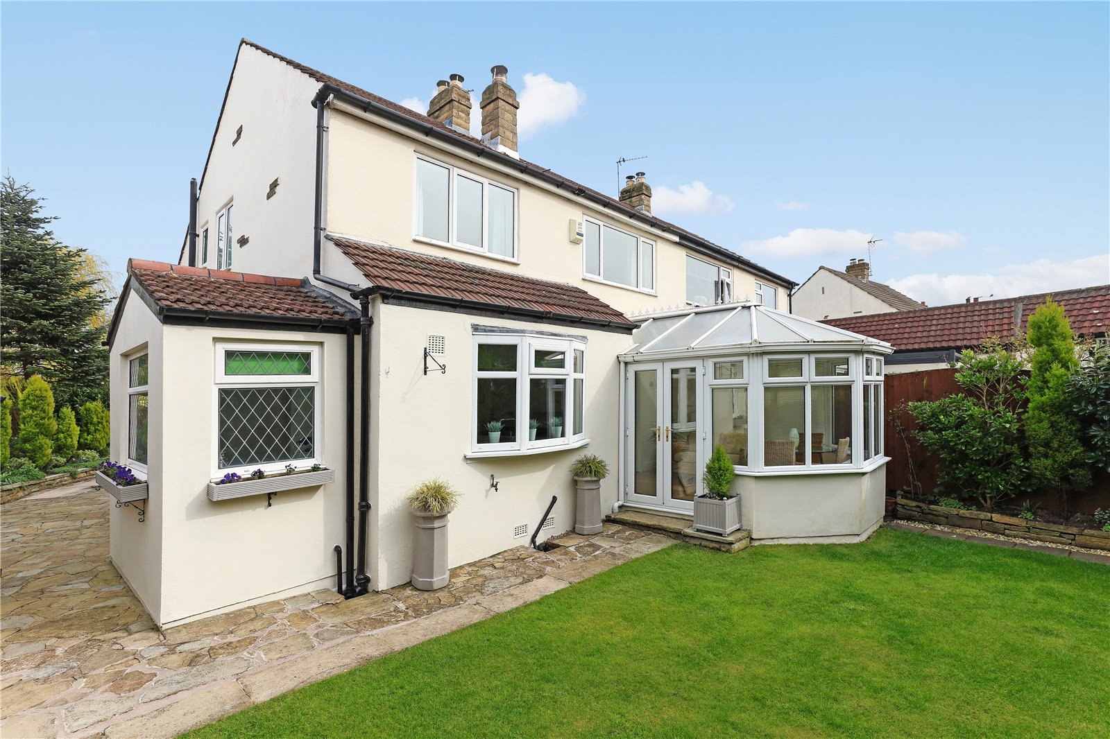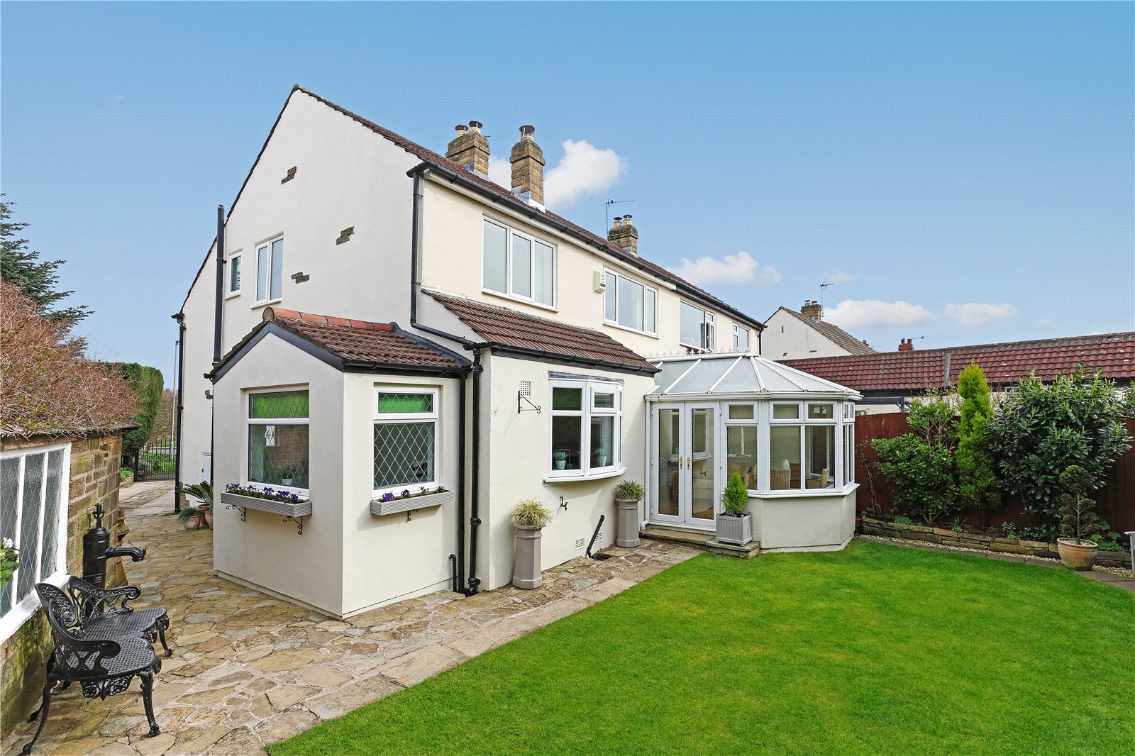 Holroyd Miller have pleasure in offering for sale this mature semi-detached house occupying a pleasant position set back from the road with open views to the front. The well planned and presented accommodation throughout, gas fired central heating, double glazing. Only an internal inspection can fully reveal all that is on offer with entrance hall, cloakroom/wc, leading to spacious through living room with feature Adam style fire surround with cast iron inset with open grate, double doors lead through to conservatory extension overlooking the rear garden, formal dining room with feature fire surround and feature double glazed bow window, well equipped kitchen with a range of cream shaker style wall and base units, contrasting granite worktops, integrated appliances, separate utility/rear entrance porch. To the first floor, three double bedrooms, house bathroom furnished with modern white suite with separate shower. Outside, delightful mature gardens with well-planned planting and lawn gardens to front and rear, driveway provides off street parking and leads to detached garage. A popular and convenient position within easy reach of the motorway network, local amenities and schools.