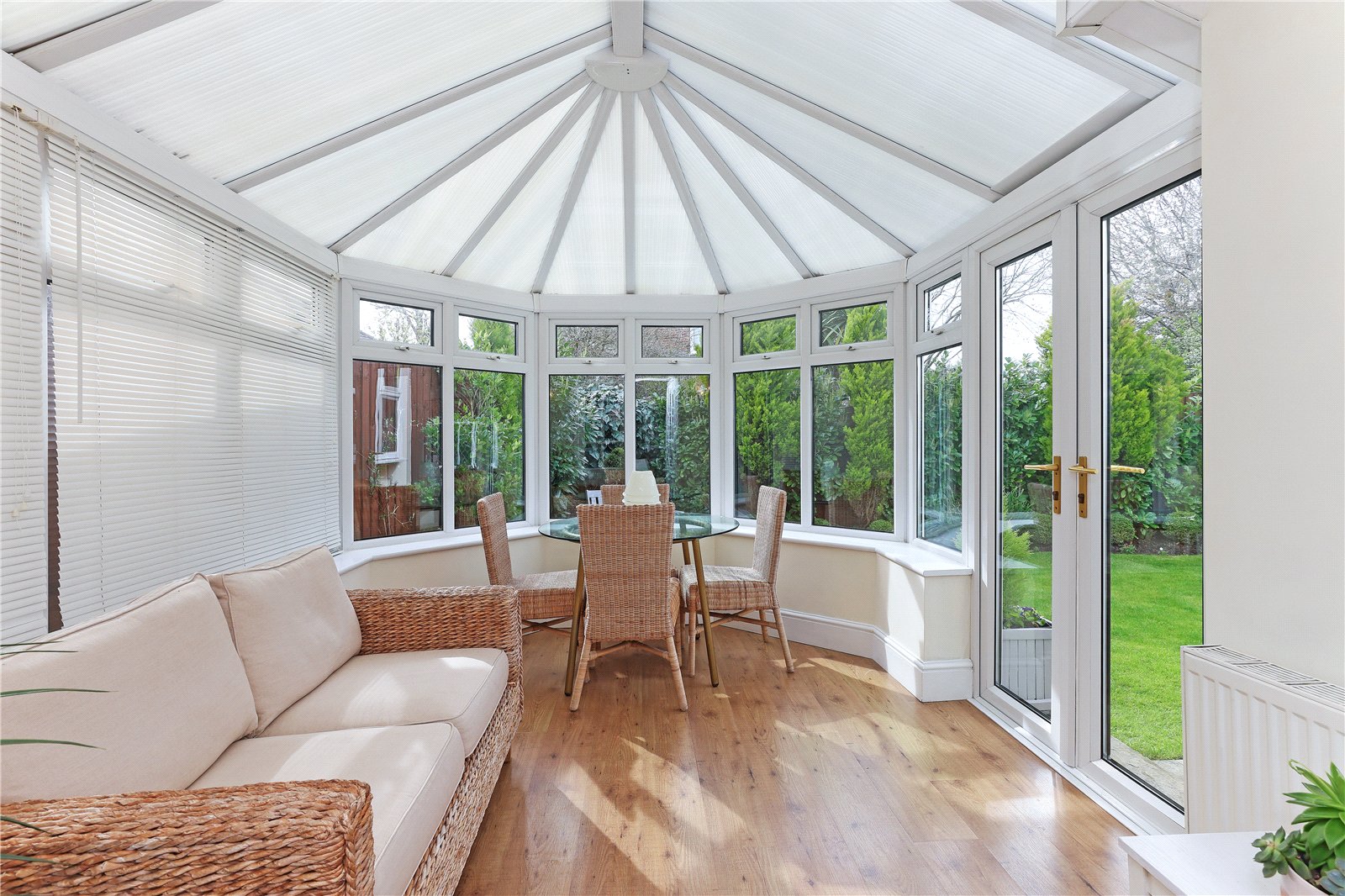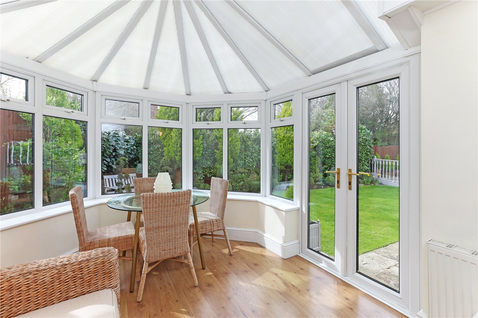 Conservatory 12'11" x 9'3" (3.94m x 2.82m). Having laminate wood flooring, being double glazed with French doors leading onto the rear garden, central heating radiator.