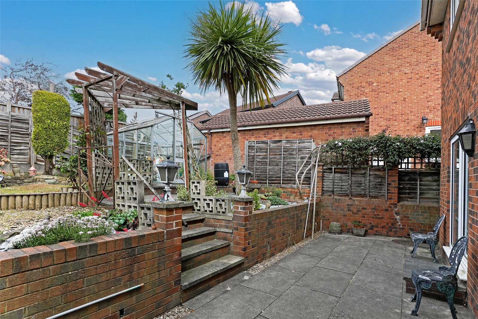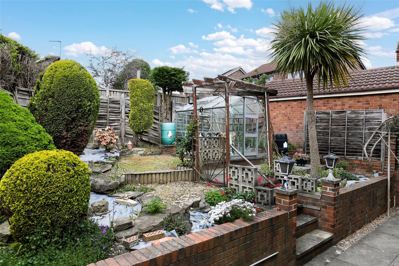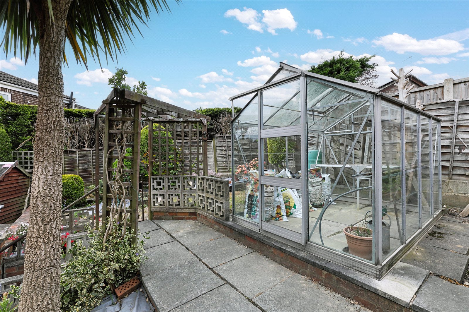 Outside Neat paved garden area to the front with mature trees and shrubs, driveway to the side leads to brick built single car garage (4.97m x 2.36m) with up and over door and personnel door with power and light laid on. To the rear, paved patio area with steps leading to raised garden area with large greenhouse all being enclosed and retaining a high degree of privacy.