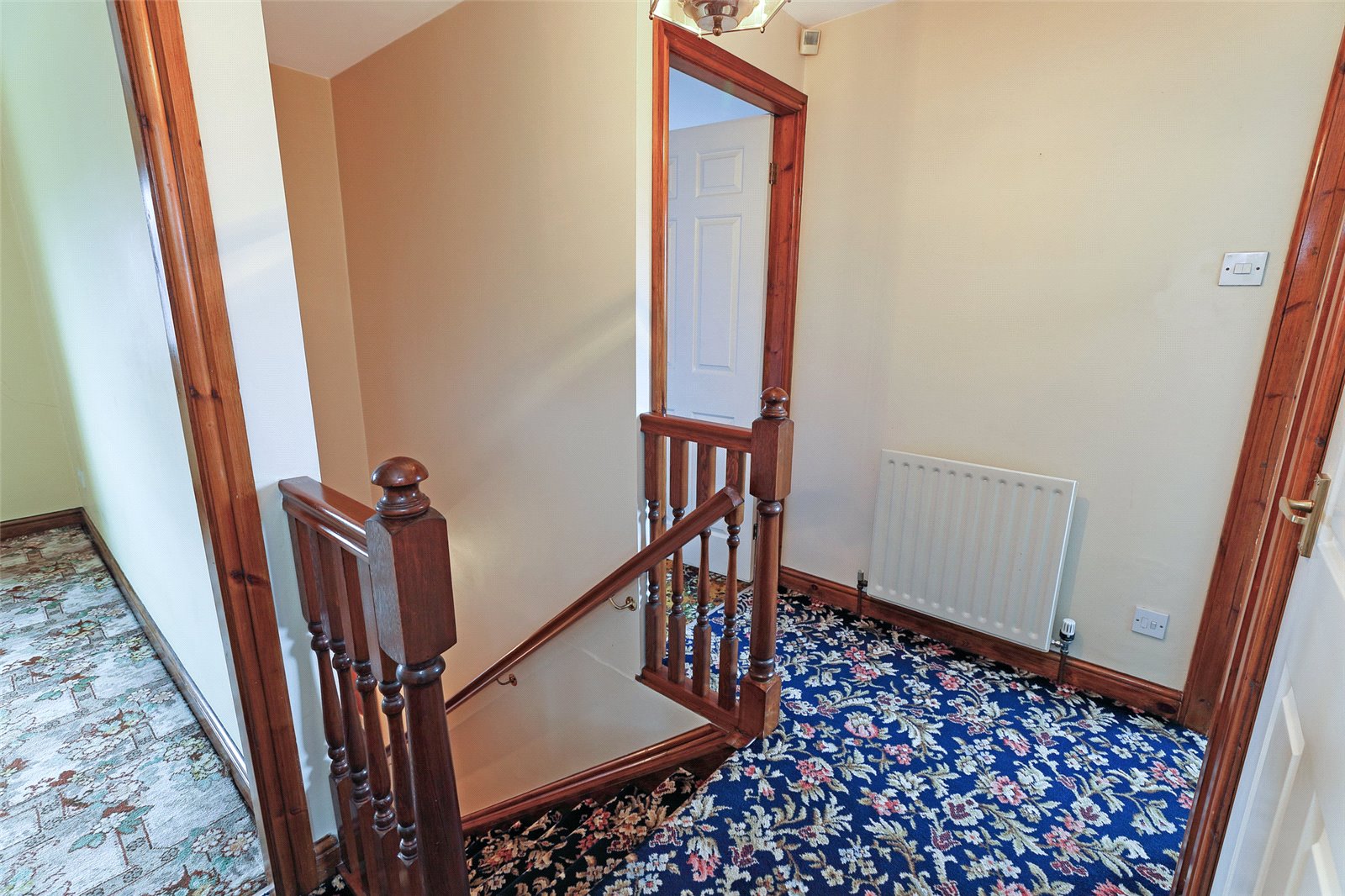 Stairs lead to First Floor Landing With storage cupboard, single panel radiator.