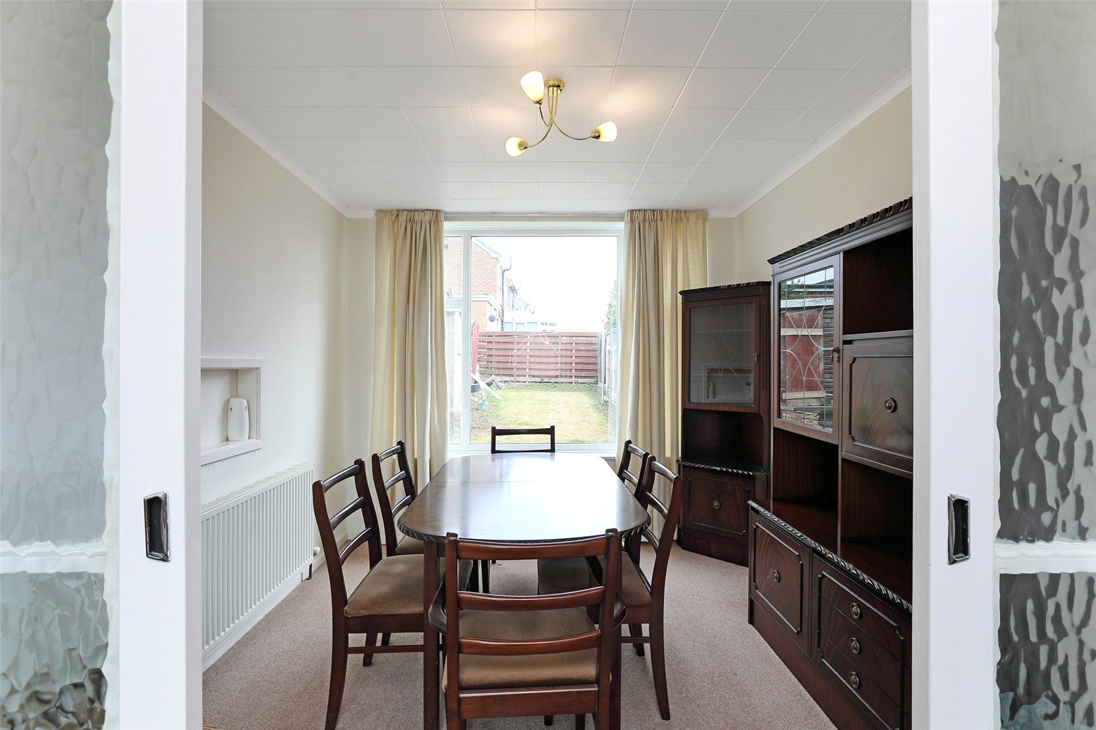 Dining Room 9'6" x 9'8" (2.9m x 2.95m). With sliding doors between the dining area and living room, double glazed window, central heating radiator.