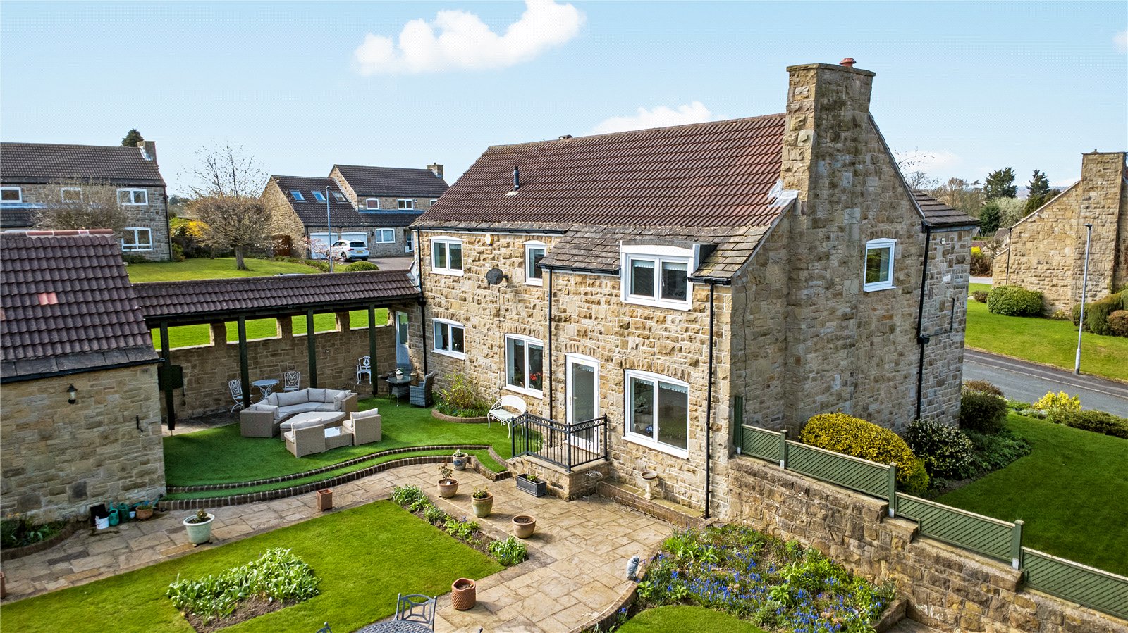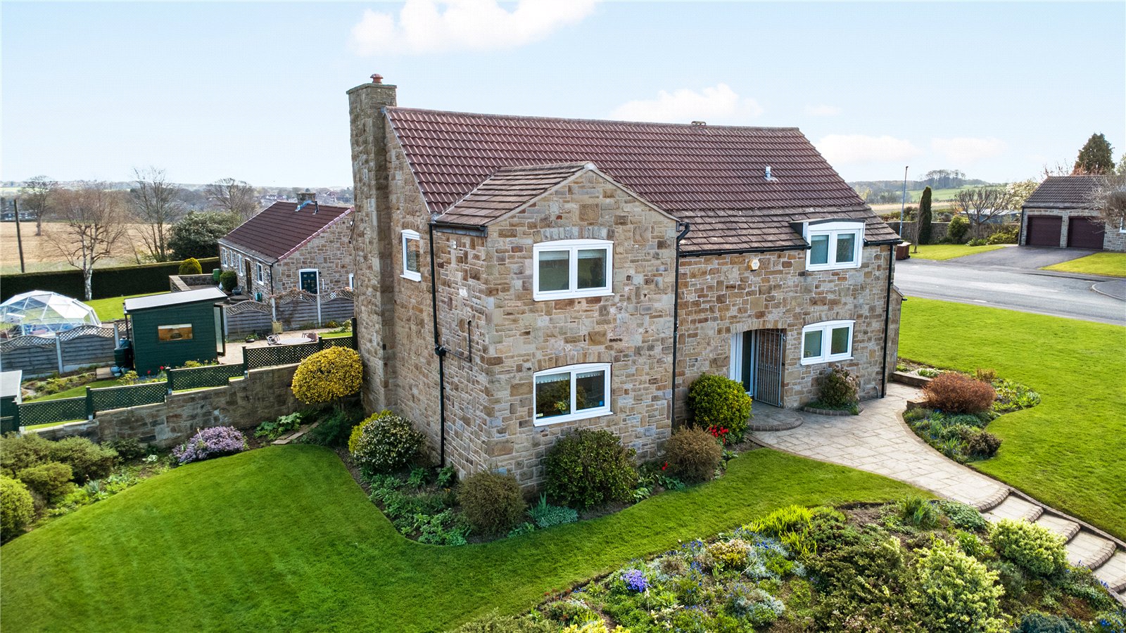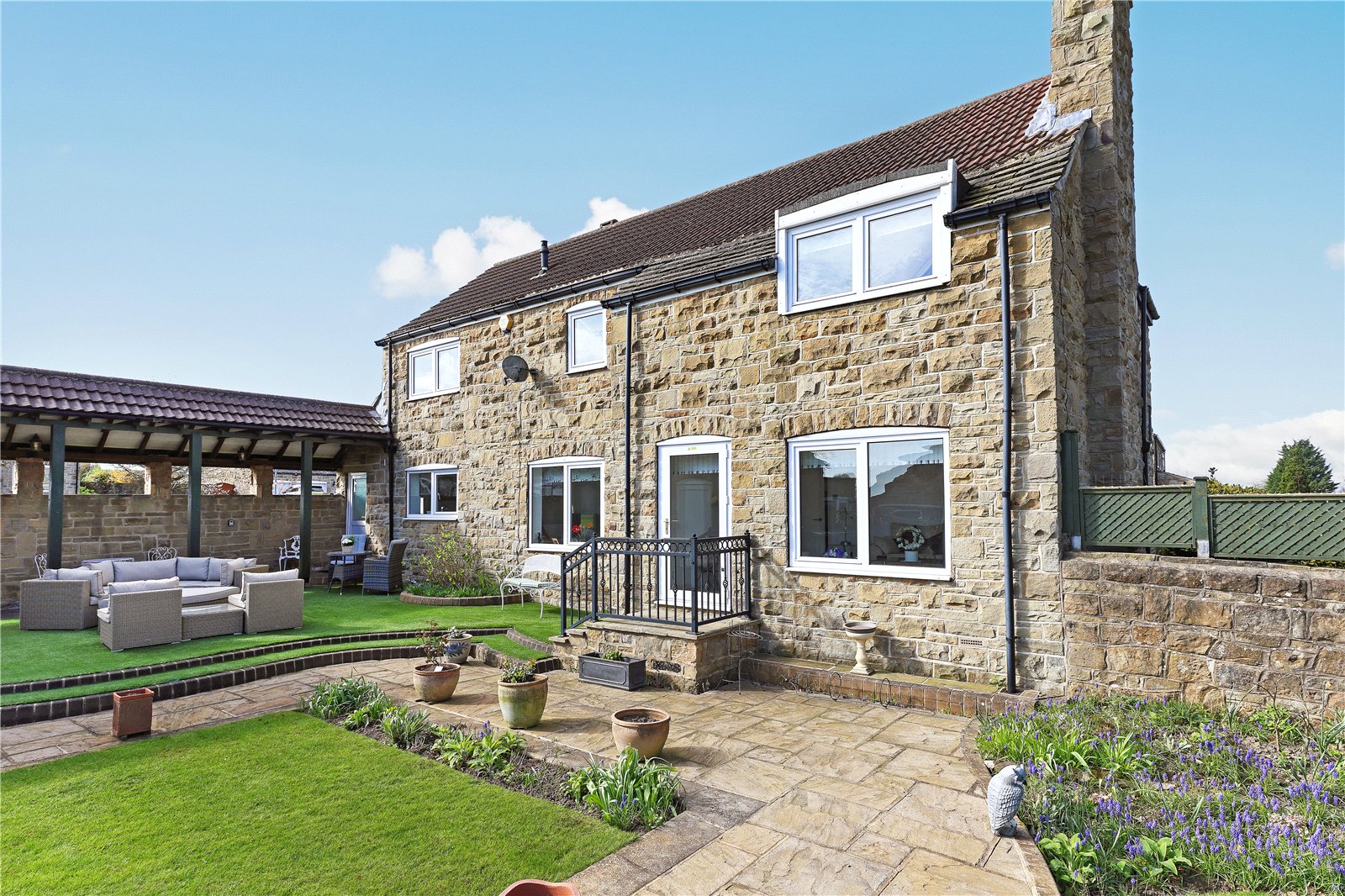 Holroyd Miller have pleasure in offering for sale this extended stone built detached family home occupying a generous and prominent garden plot within this sought after and select development in the heart of Sandal with open views. Offering excellent entertaining and outside space together with a Cloister offering covered seating during the summer months with detached double garage. The well planned and presented accommodation has warm air central heating, double glazing and comprising outer entrance porch leading to reception hallway, cloaks w.c living room making the most of the views overlooking the garden, formal dining room, snug/home office, well-appointed breakfast kitchen with a range of built in appliances. To the first floor, four good sized bedrooms, all with fitted wardrobes, two having ensuite, house bathroom. A truly enviable home located in this sought after position of Sandal within easy reach of Sandal train station, supermarkets, restaurants, Wakefield Golf Club and access to the M1 at Junction39 for those commuting to Leeds or Sheffield. Offered with No Chain. Must be Viewed.