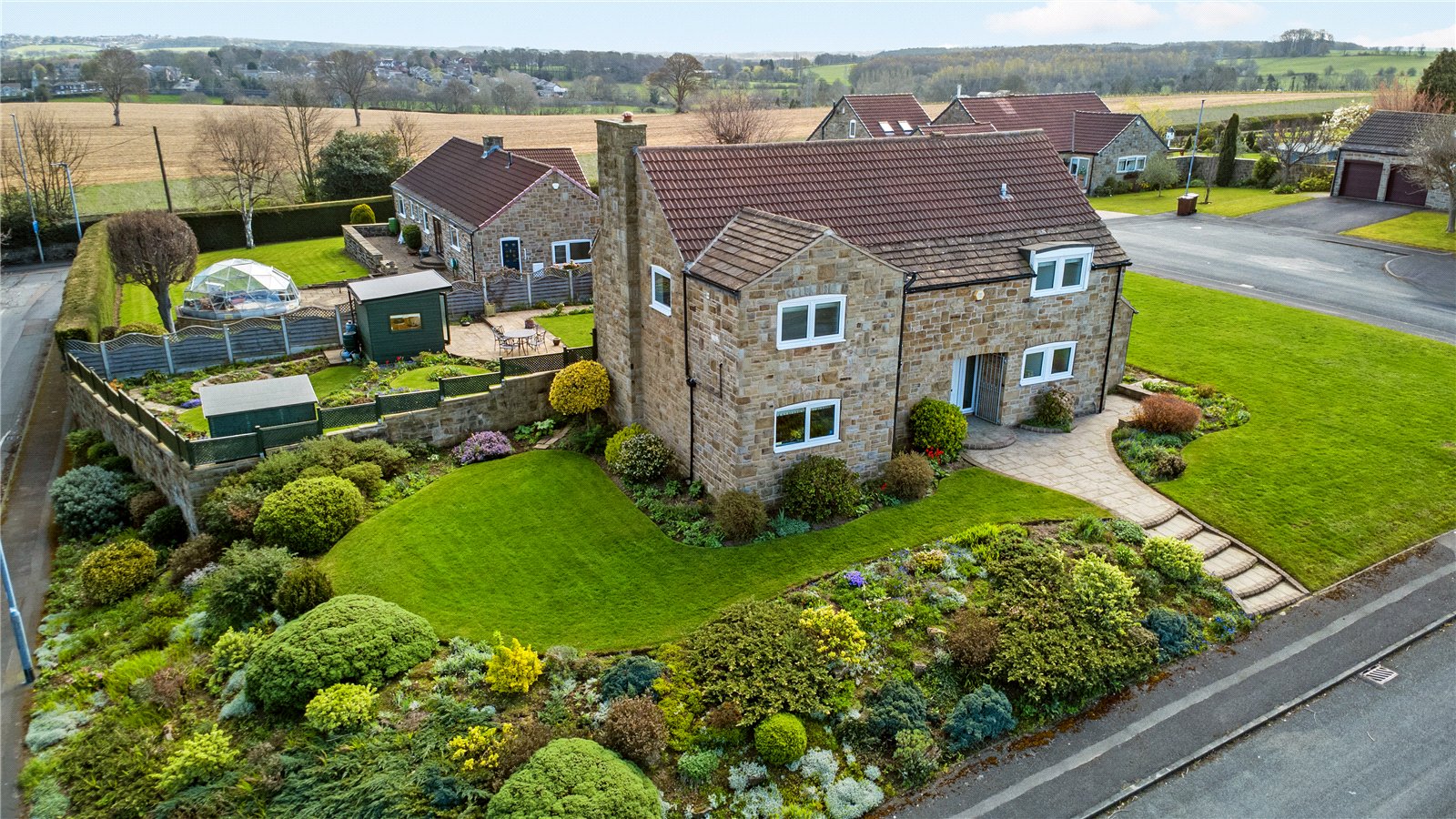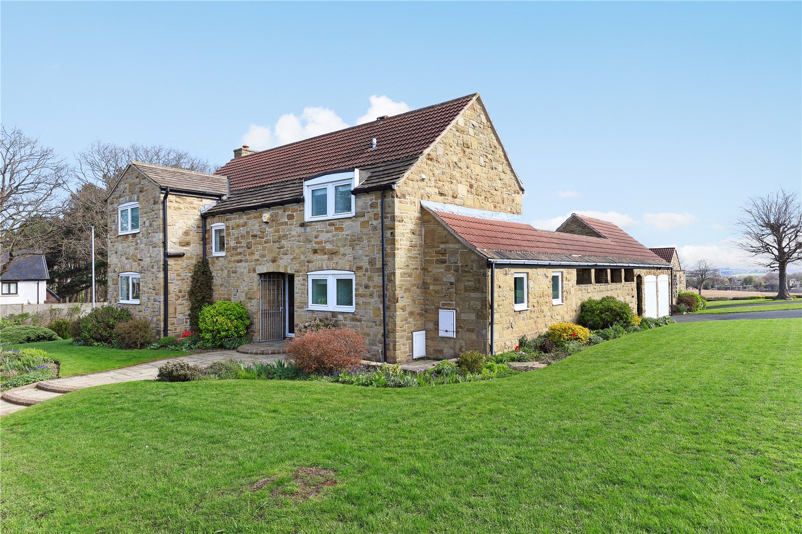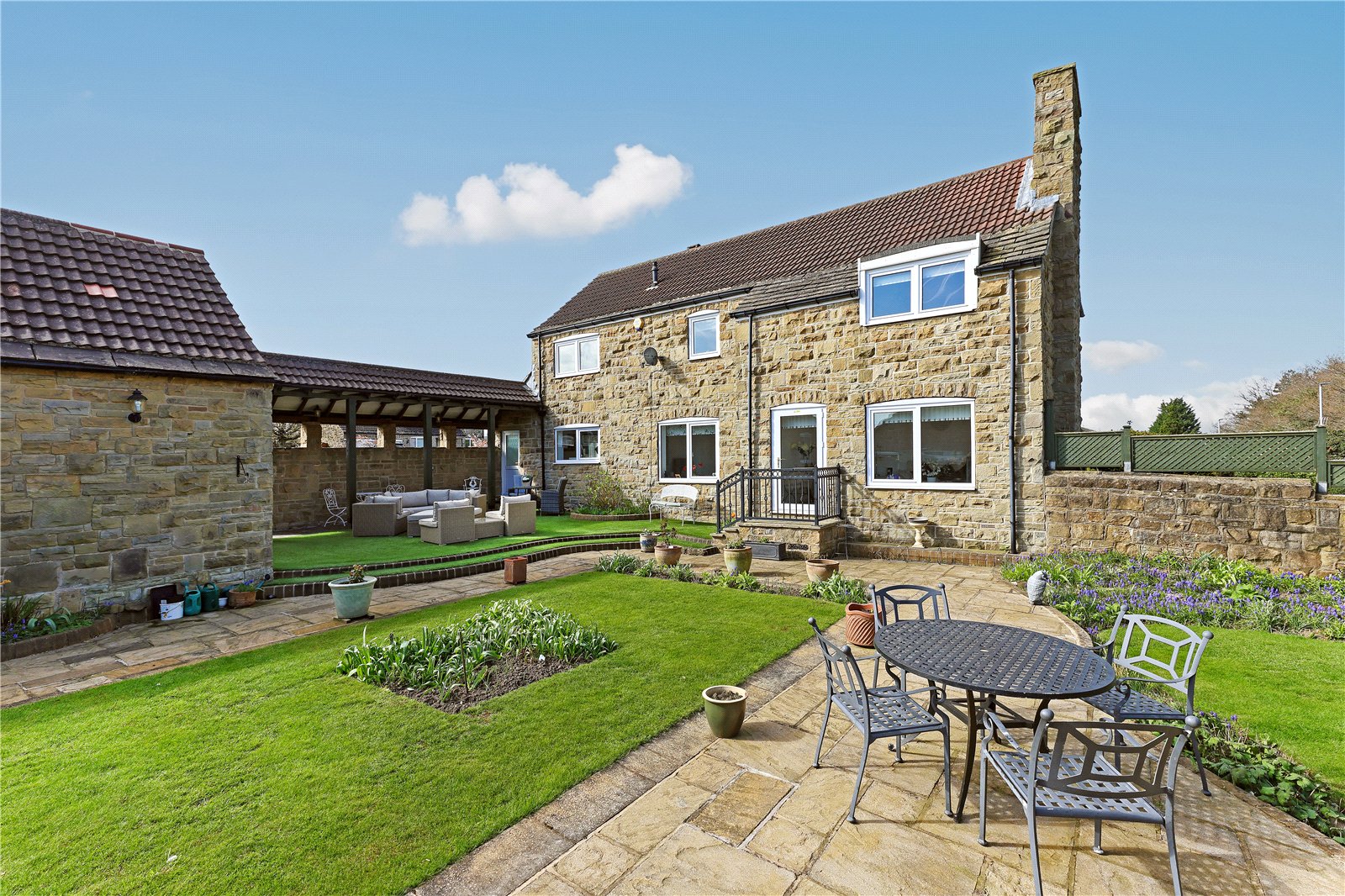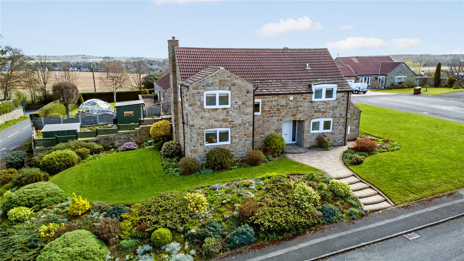 Holroyd Miller have pleasure in offering for sale this extended stone built detached family home occupying a generous and prominent garden plot within this sought after and select development in the heart of Sandal with open views. Offering excellent entertaining and outside space together with a Cloister offering covered seating during the summer months with detached double garage. The well planned and presented accommodation has warm air central heating, double glazing and comprising outer entrance porch leading to reception hallway, cloaks w.c living room making the most of the views overlooking the garden, formal dining room, snug/home office, well-appointed breakfast kitchen with a range of built in appliances. To the first floor, four good sized bedrooms, all with fitted wardrobes, two having ensuite, house bathroom. A truly enviable home located in this sought after position of Sandal within easy reach of Sandal train station, supermarkets, restaurants, Wakefield Golf Club and access to the M1 at Junction39 for those commuting to Leeds or Sheffield. Offered with No Chain. Must be Viewed.