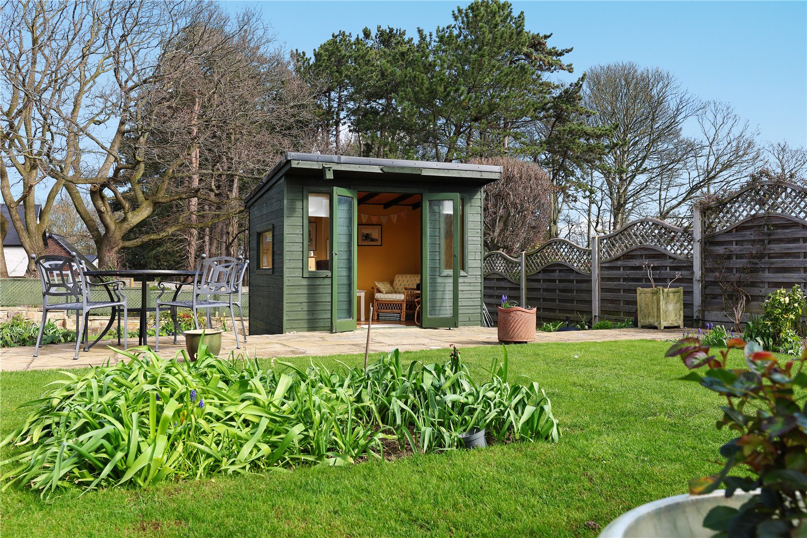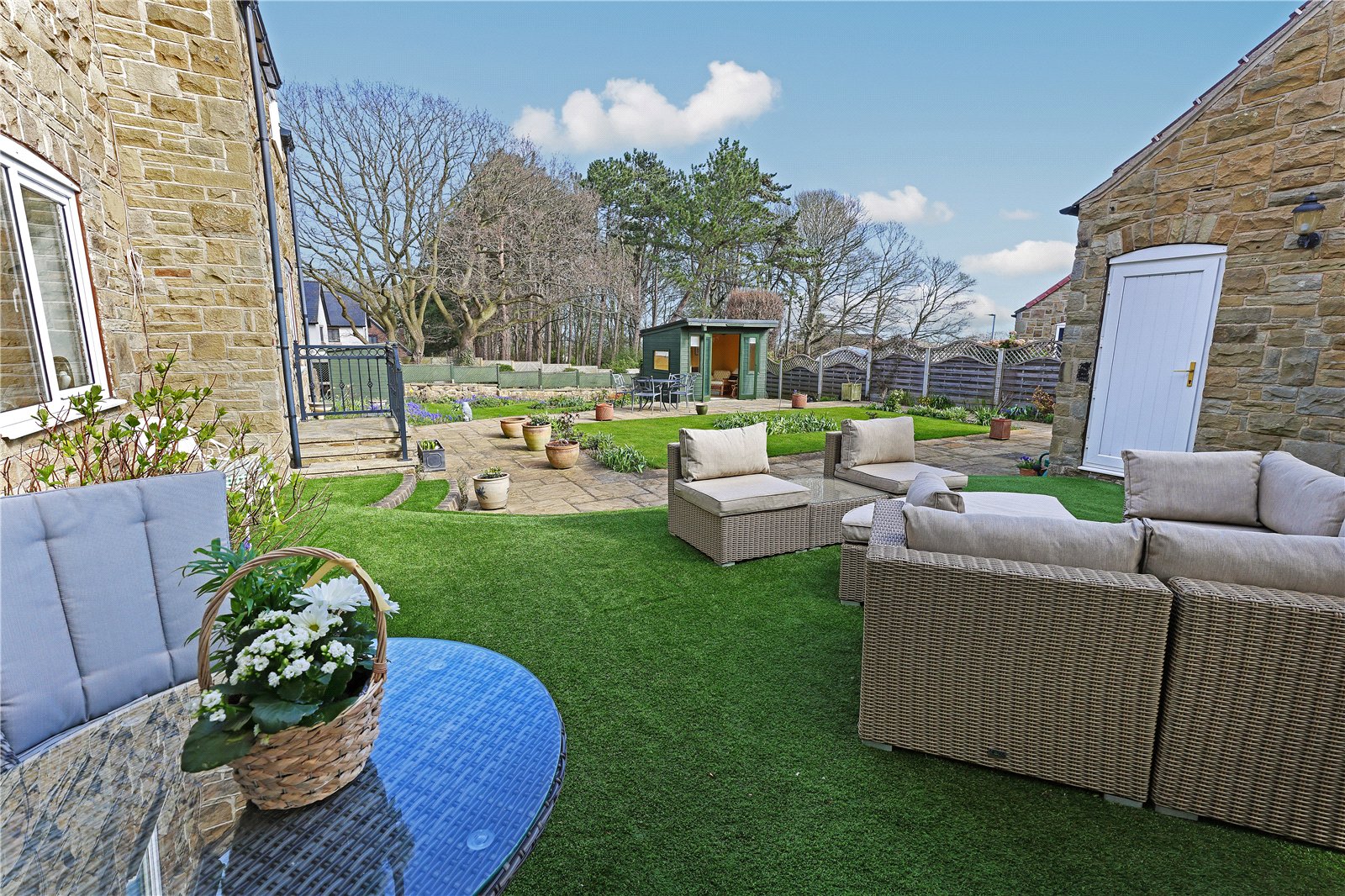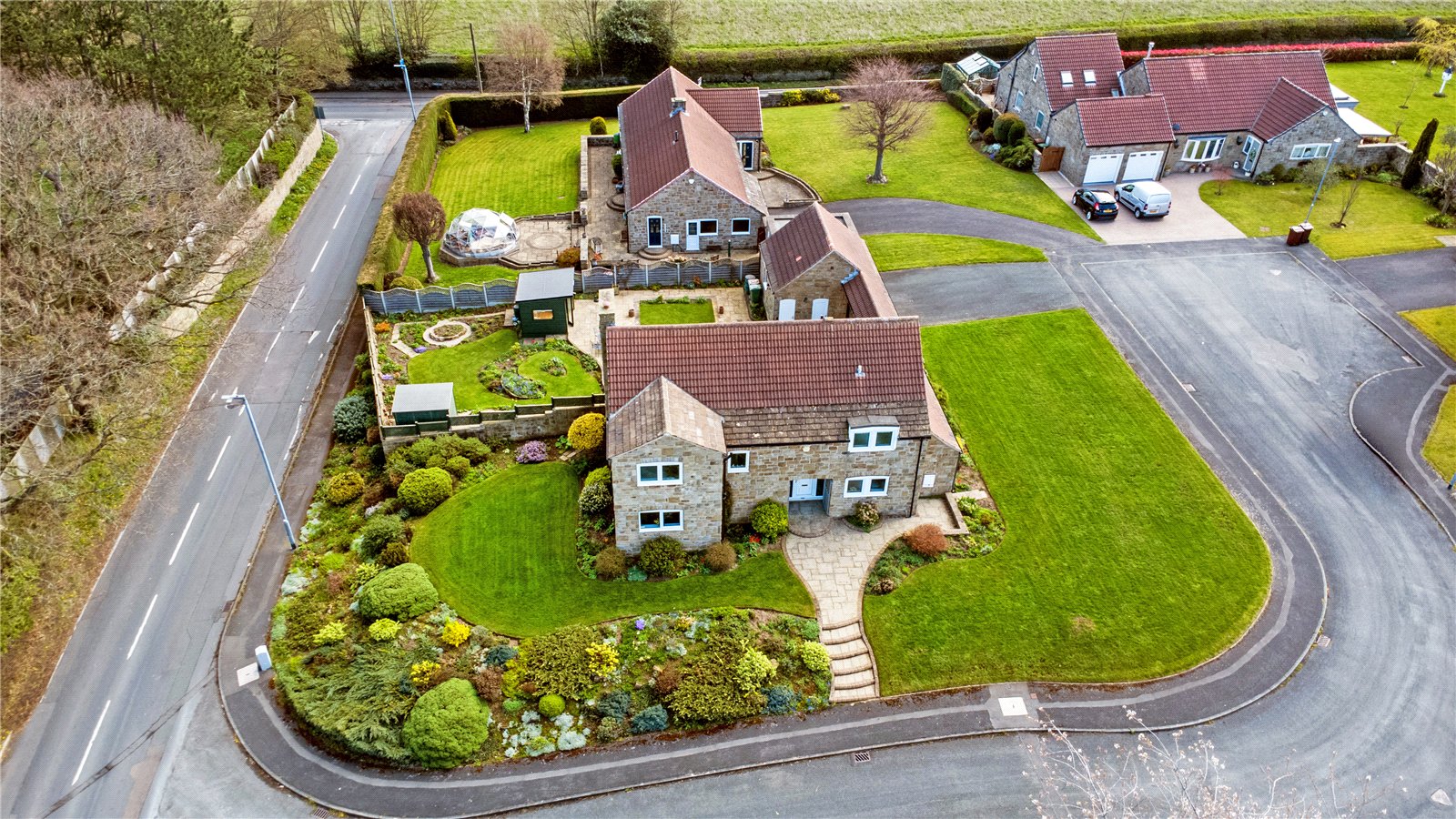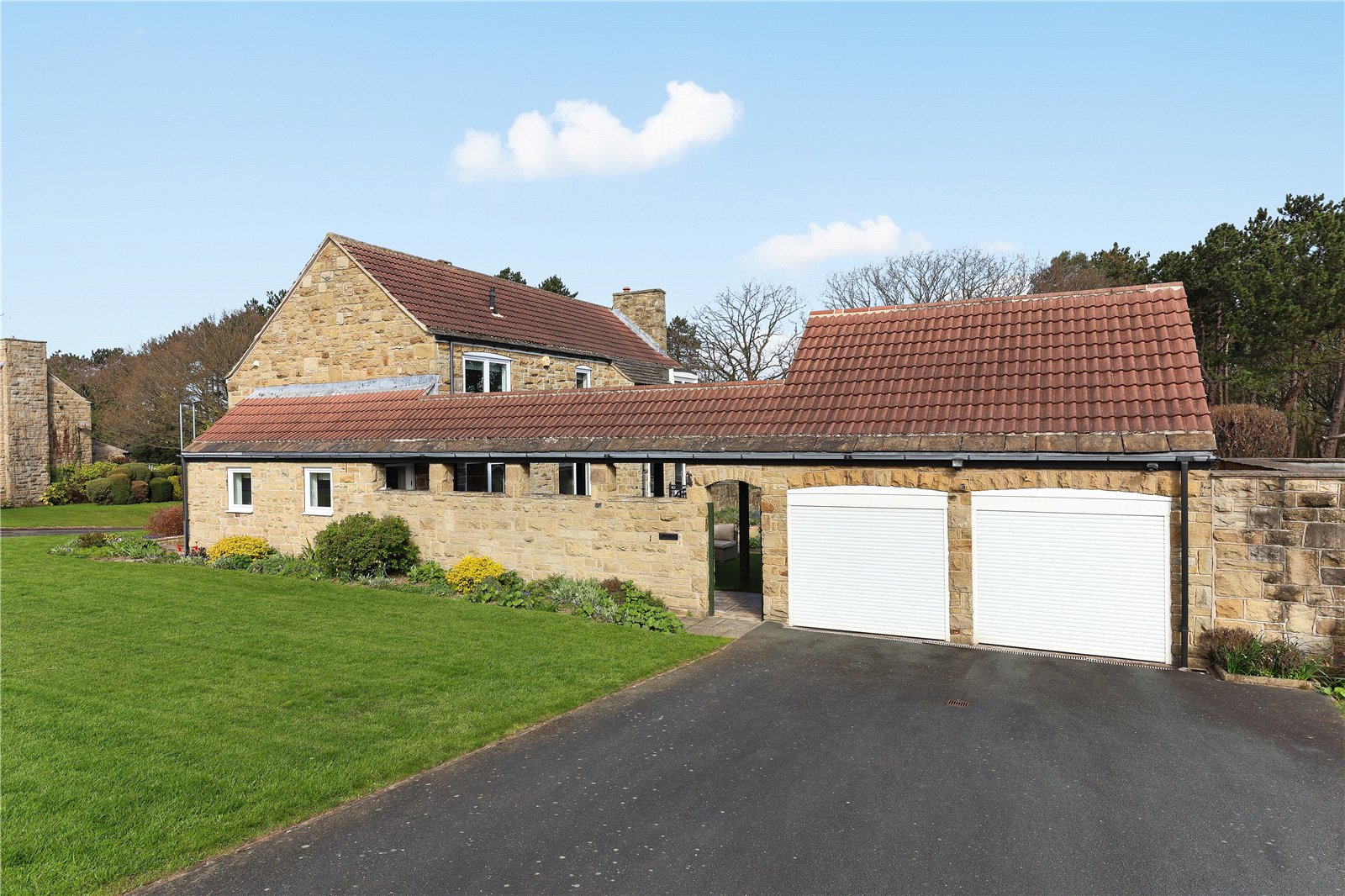 Outside The property occupies a generous corner position on the edge of this select development with sloping rockery gardens to the front and side, with adjacent lawn gardens being open plan to the side with double width driveway providing ample off street parking leading to double garage (5.4m x 5.18m) with automated doors, enclosed rear garden with well stocked borders with mix of artificial turf and lawn garden areas, covered seating area with feature garden room, further covered seating area under the Cloister making this an excellent entertaining space with open views.