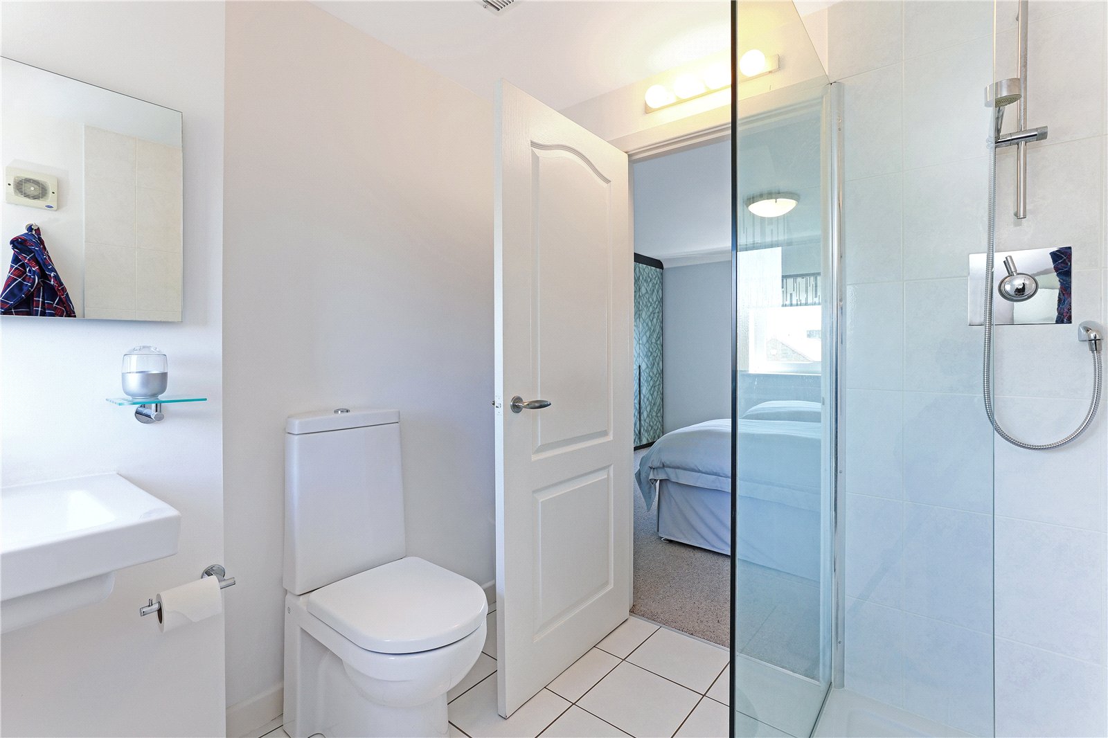 Ensuite Shower Room Having wash hand basin, low flush w/c, walk-in shower, tiling, double glazed window.