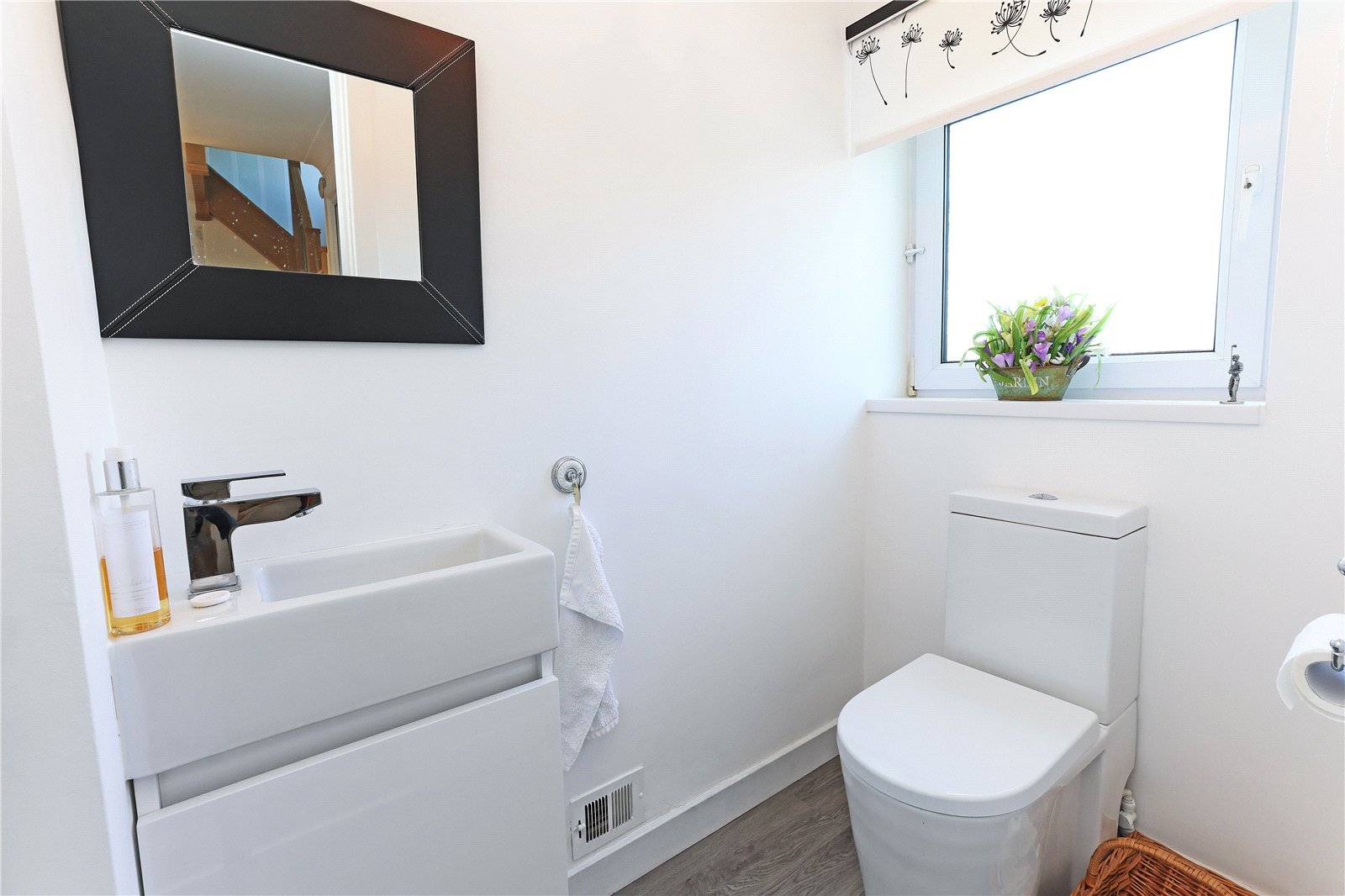 Cloakroom Having pedestal wash basinm low flush w.c, double glazed window.