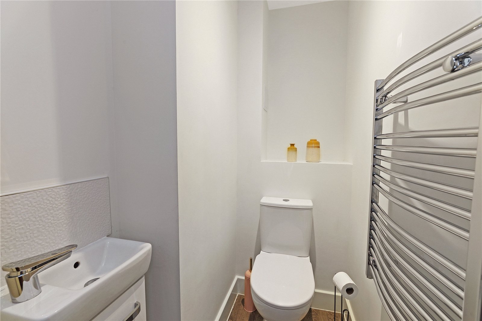Cloakroom Having wash hand basin, low flush w/c, chrome heated towel rail.