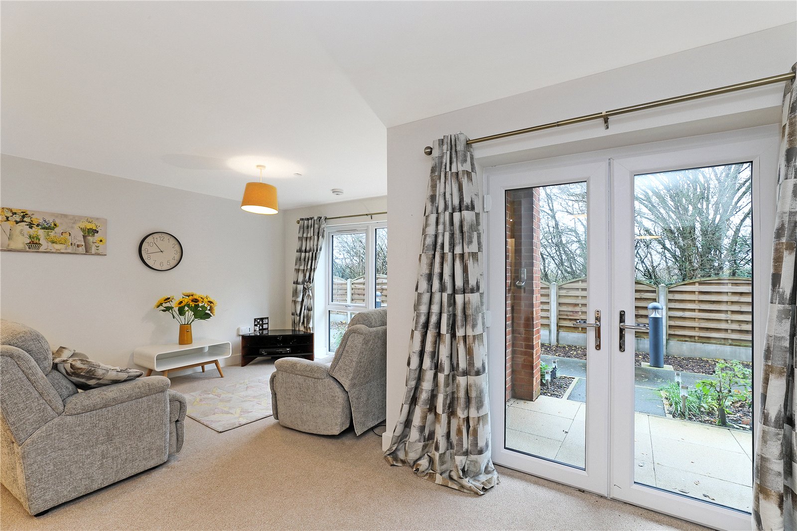 Purpose built over 55's ground floor apartment with covered outside patio area, open plan living space with fitted kitchen area, two double bedrooms, combined shower room and guest wc. Popular village location, No Chain.
