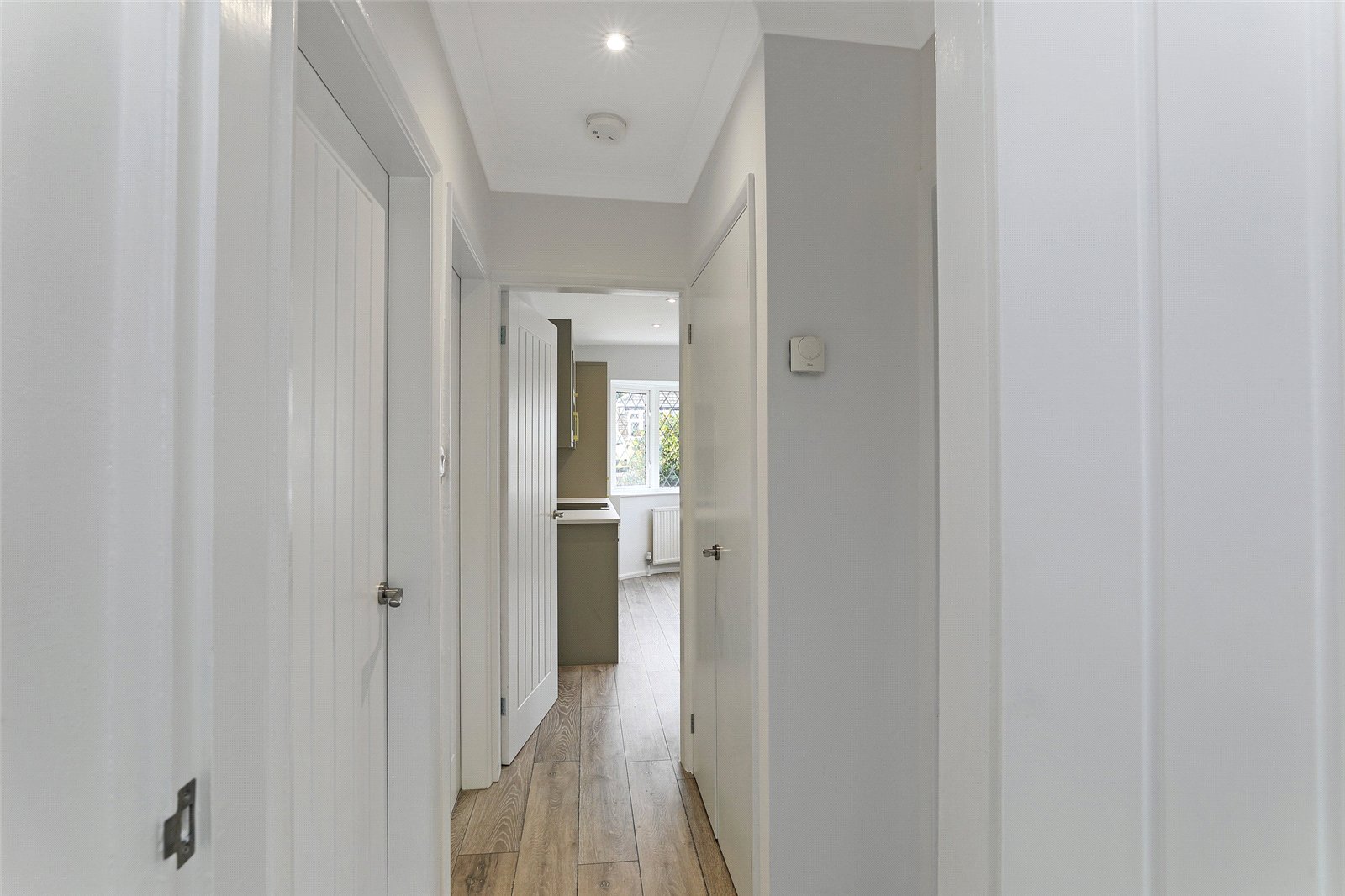 Side Entrance to Kitchen/Diner 14'2" (4.31m) plus bay window x 9'10" (3.00m). Recently refitted with a range of Shaker style grey fronted wall and base units, marble effect contrasting worktops, colour co-ordinated sink unit, monobloc tap fitment, built in oven and hob with extractor hood over, integrated fridge and freezer, dishwasher, plumbing for automatic washing machine, laminate wood flooring, downlighting to the ceiling, double glazed bay window to the front, double glazed window to the side, double glazed side entrance door, central heating radiator.