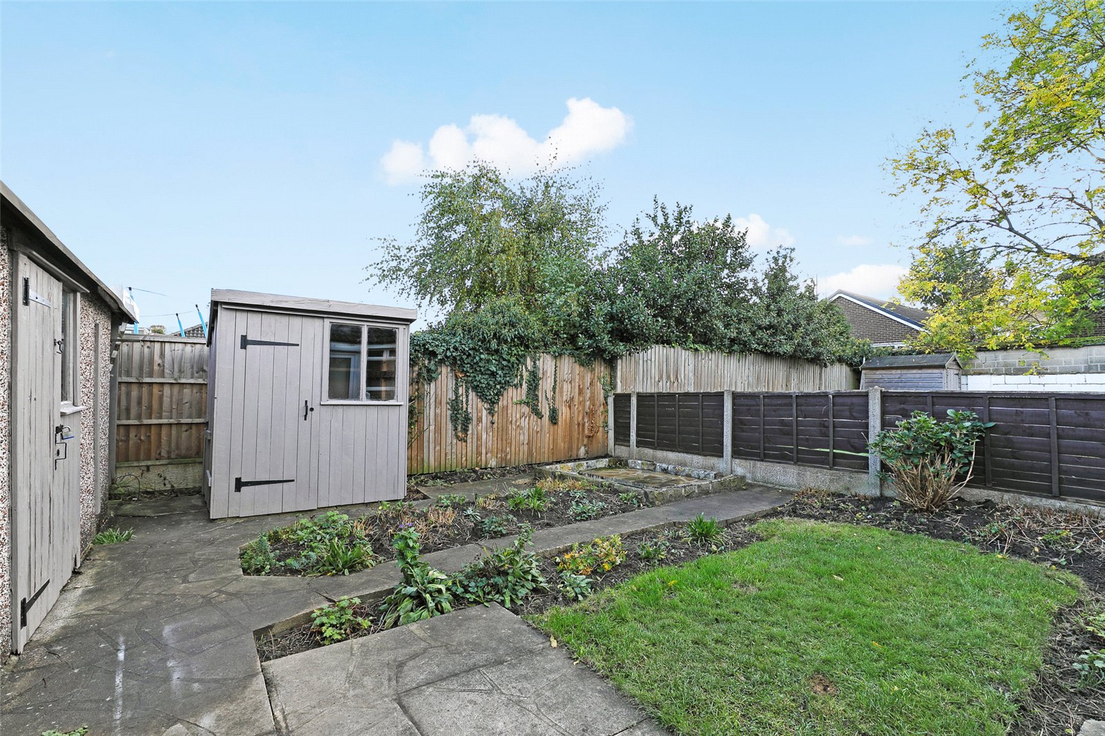 Outside Neat lawn garden to the front with flowering borders, concrete driveway to the side leads to single car garage. To the rear, neat mainly lawn garden with useful garden shed with pathways and patio, retaining a high degree of privacy.