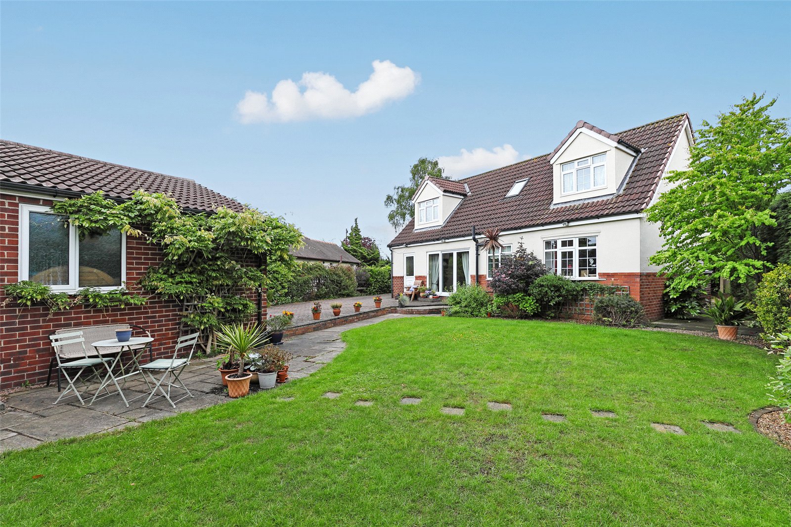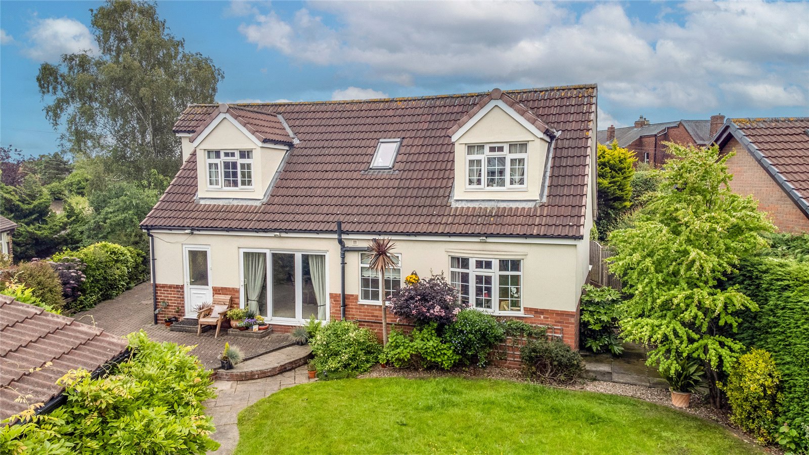 A truly unique and individual detached dormer bungalow, offering well proportioned accommodation with three/four bedrooms, two reception rooms, three bathrooms, double garage.