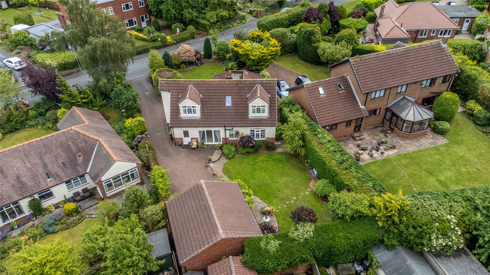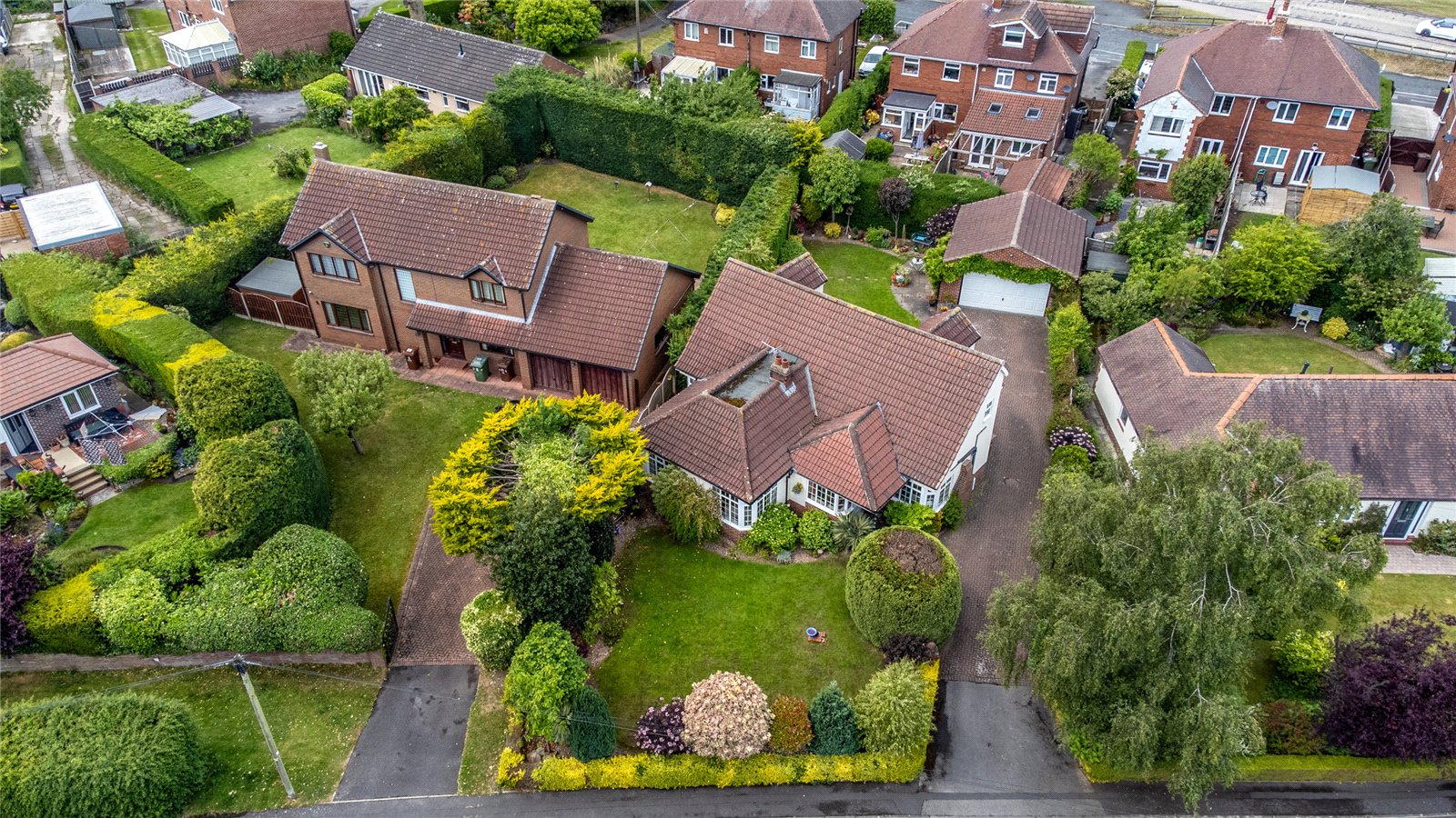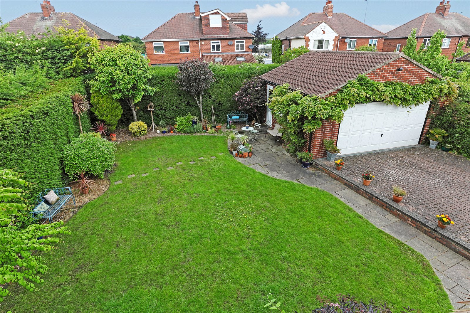Outside To the front is a mature lawn garden with mature trees and shrubs, block paved driveway to the side leads to the rear providing ample off street parking leading to detached double garage with automated up and over door, power and light laid on and ample loft storage area. To the rear, generous laid to lawn garden with stone paved patio area, mature trees and shrubs retaining a high degree of privacy.