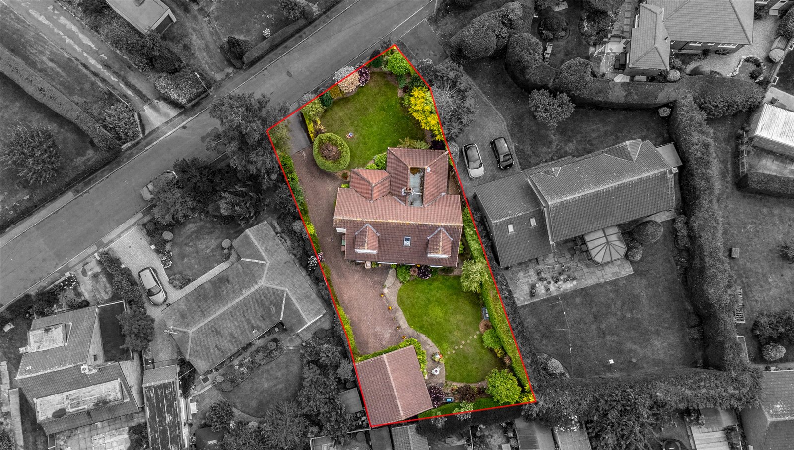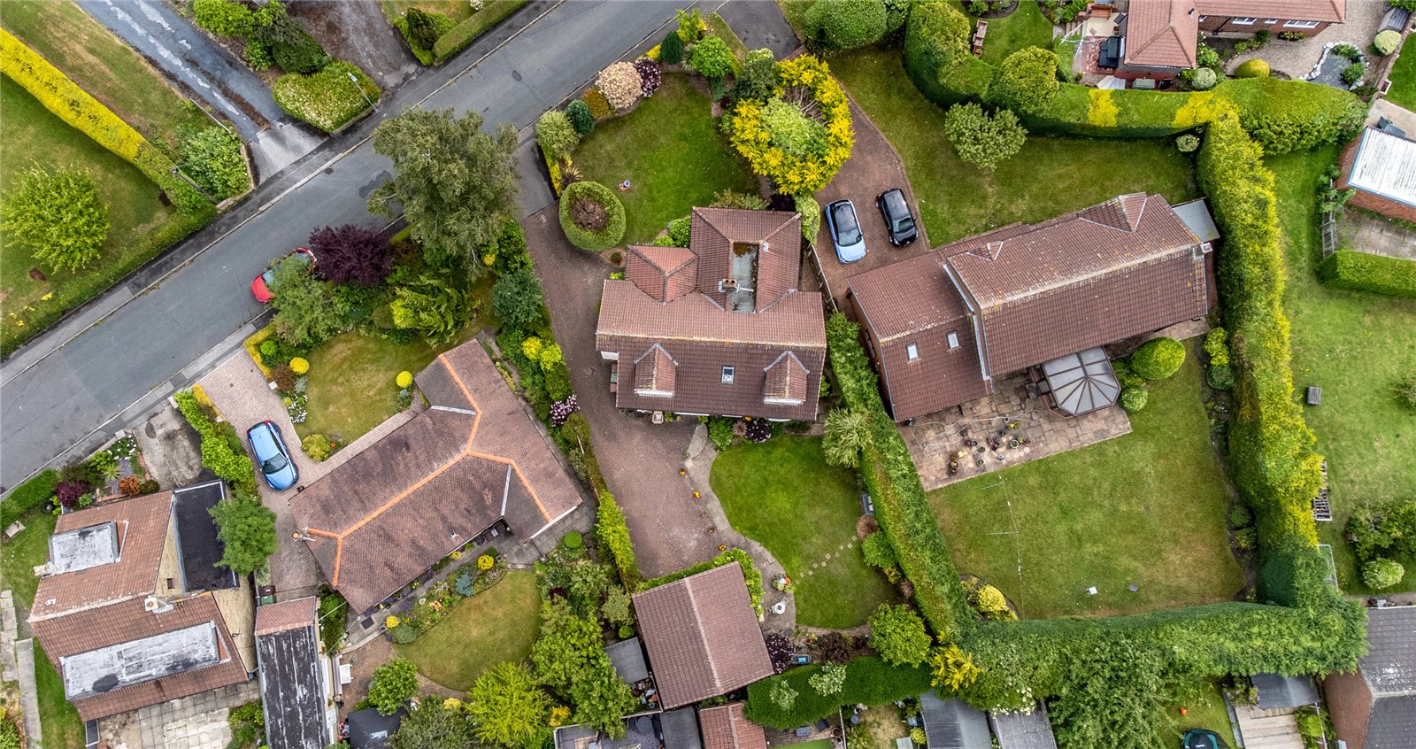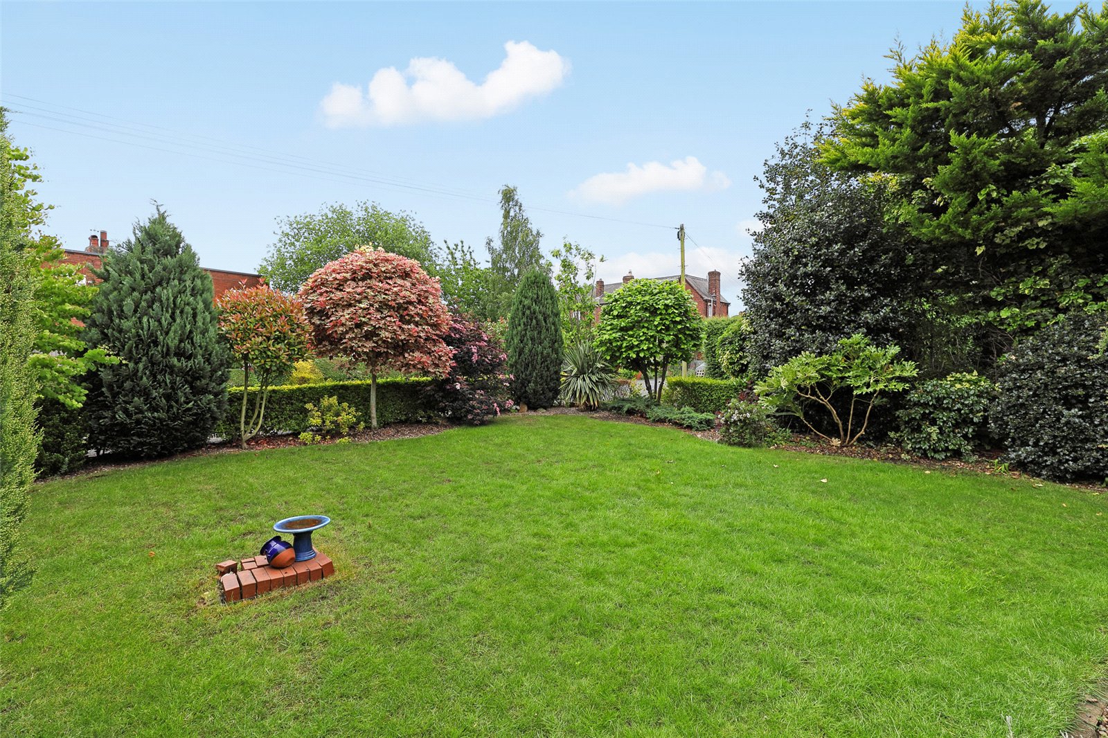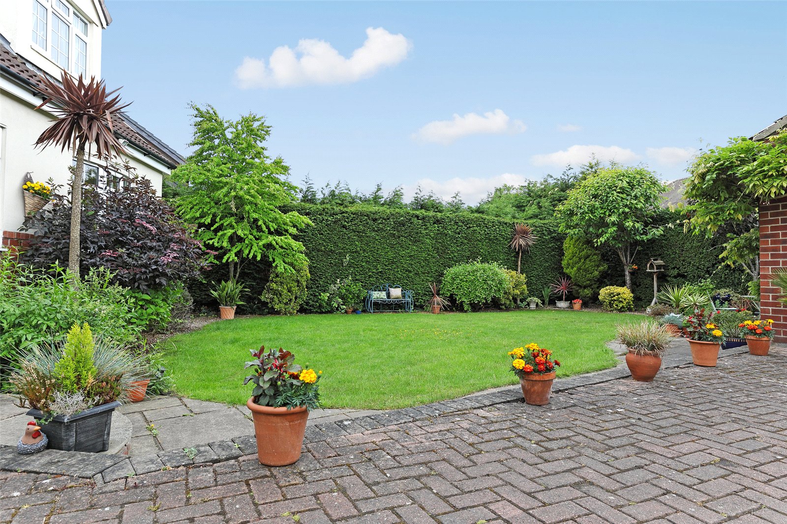 Outside To the front is a mature lawn garden with mature trees and shrubs, block paved driveway to the side leads to the rear providing ample off street parking leading to detached double garage with automated up and over door, power and light laid on and ample loft storage area. To the rear, generous laid to lawn garden with stone paved patio area, mature trees and shrubs retaining a high degree of privacy.