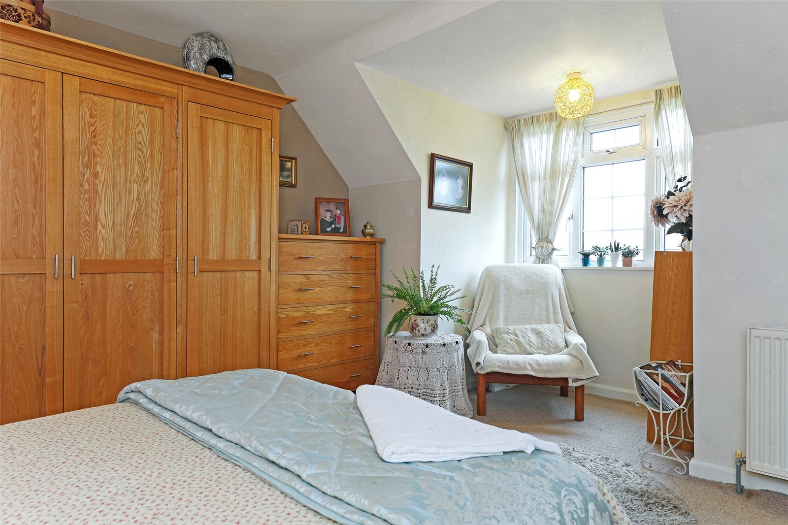 Bedroom 14'2" x 12'1" (4.32m x 3.68m). With double glazed window overlooking the rear garden, access to useful eaves storage.