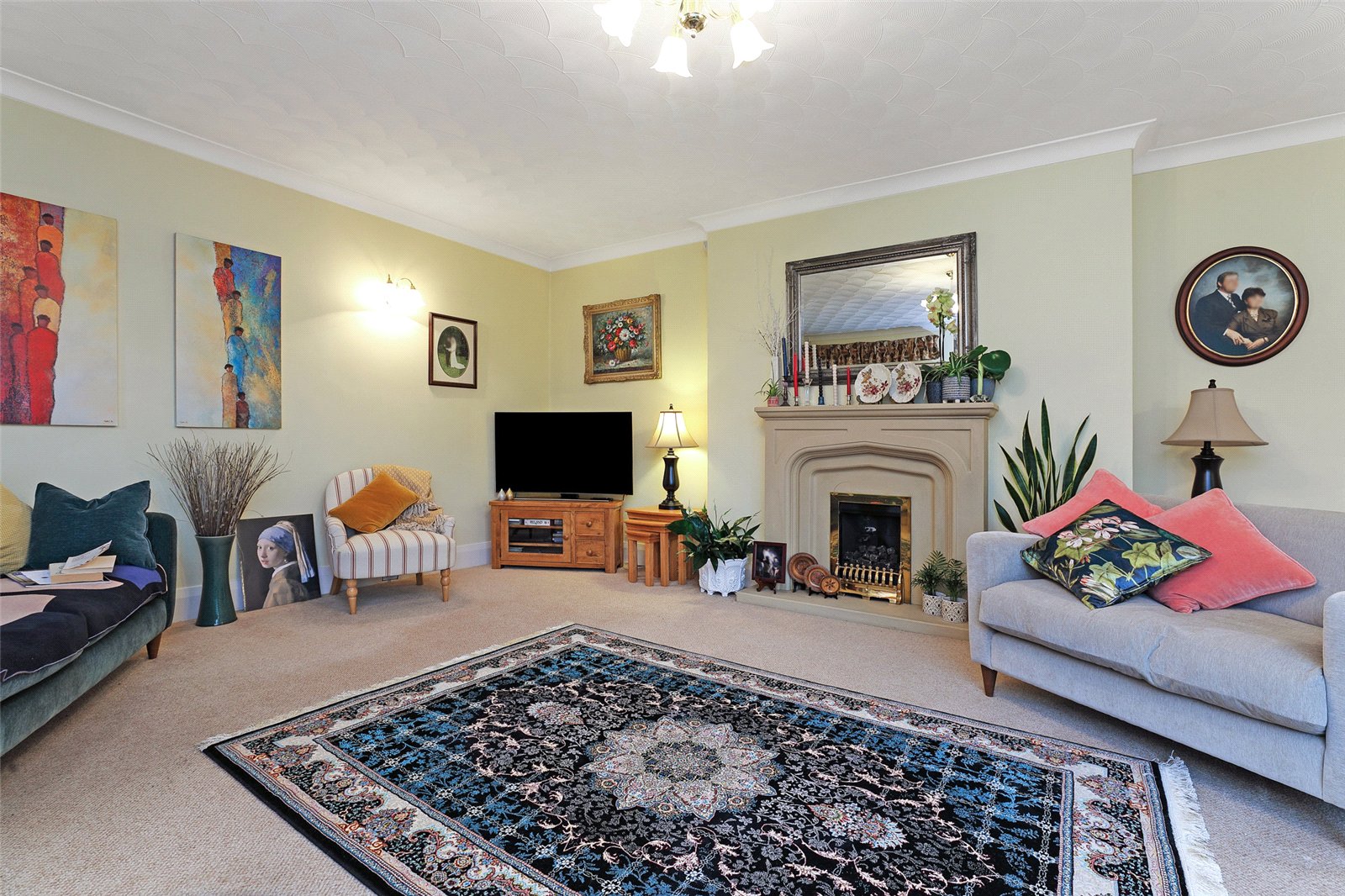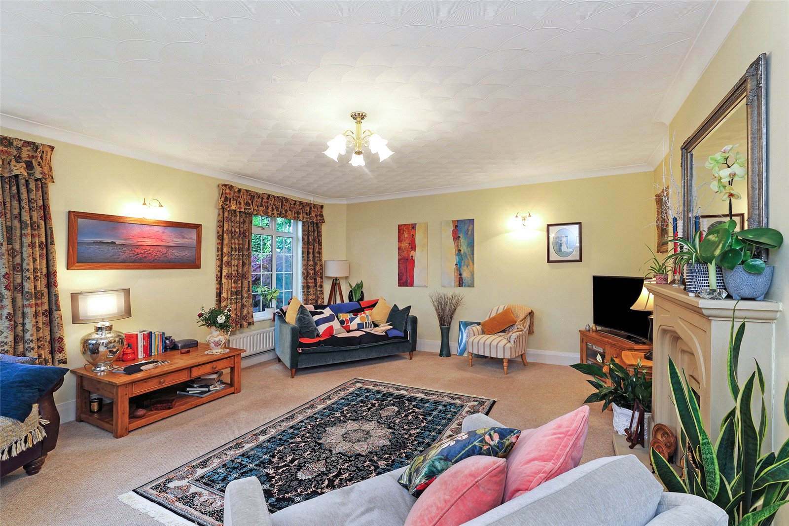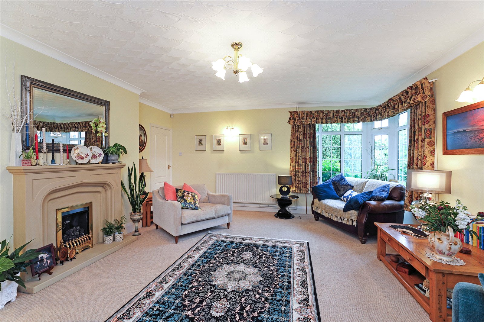Living Room 18'10" x 15'11" (5.74m x 4.85m). With feature double glazed corner window, further double glazed windows make this a light and airy room with feature fire surround and hearth.