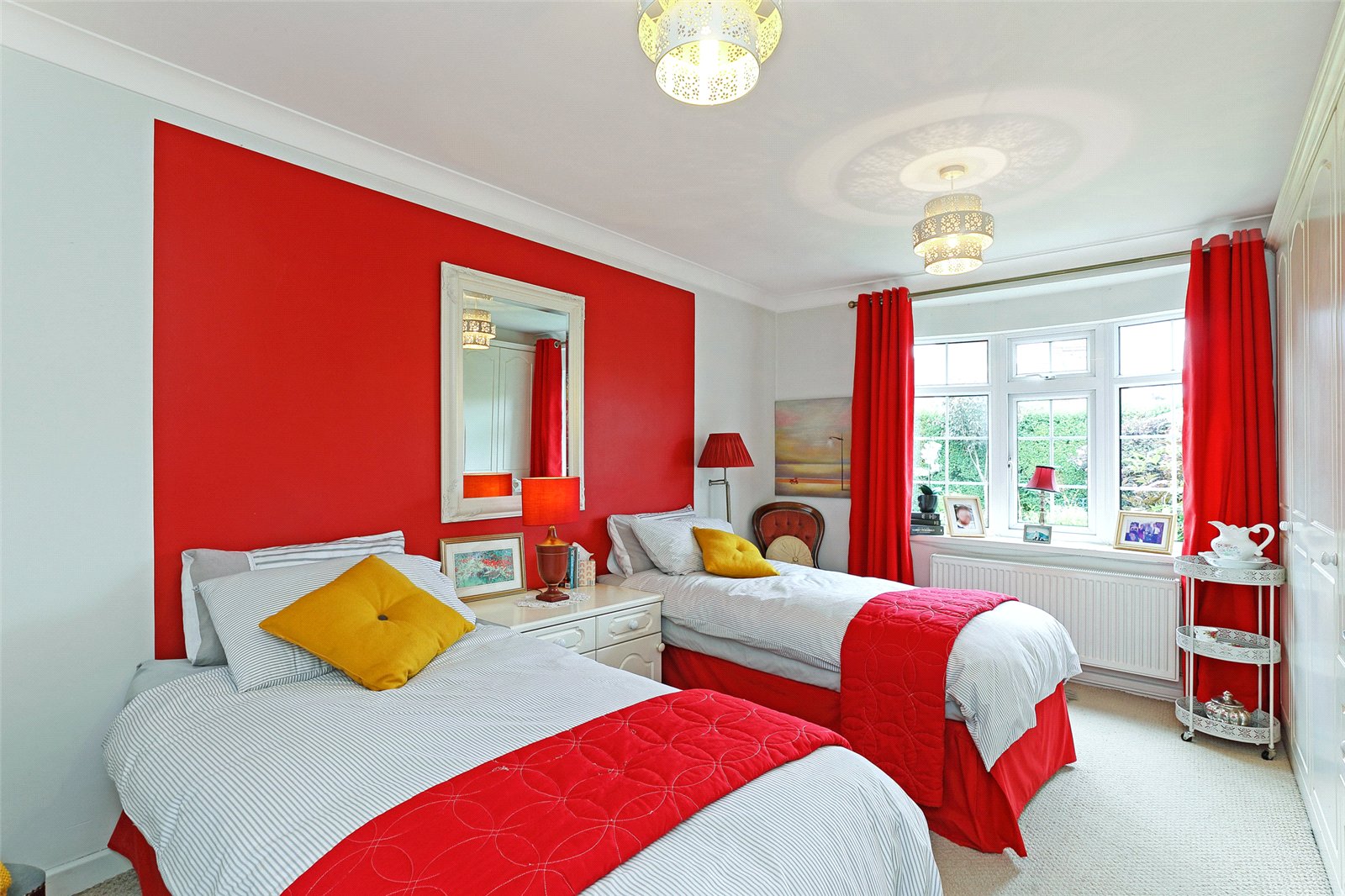 Bedroom 17'5" x15'5" max (5.3m x4.7m max). Fitted with a matching range of limed oak wardrobes, overhead cupboards, double glazed window.