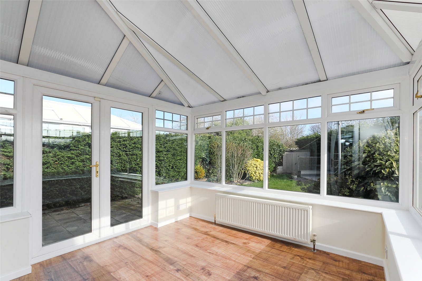 Conservatory 9'2" x 11' (2.8m x 3.35m). With laminate wood flooring, being double glazed with doors leading onto the rear garden.