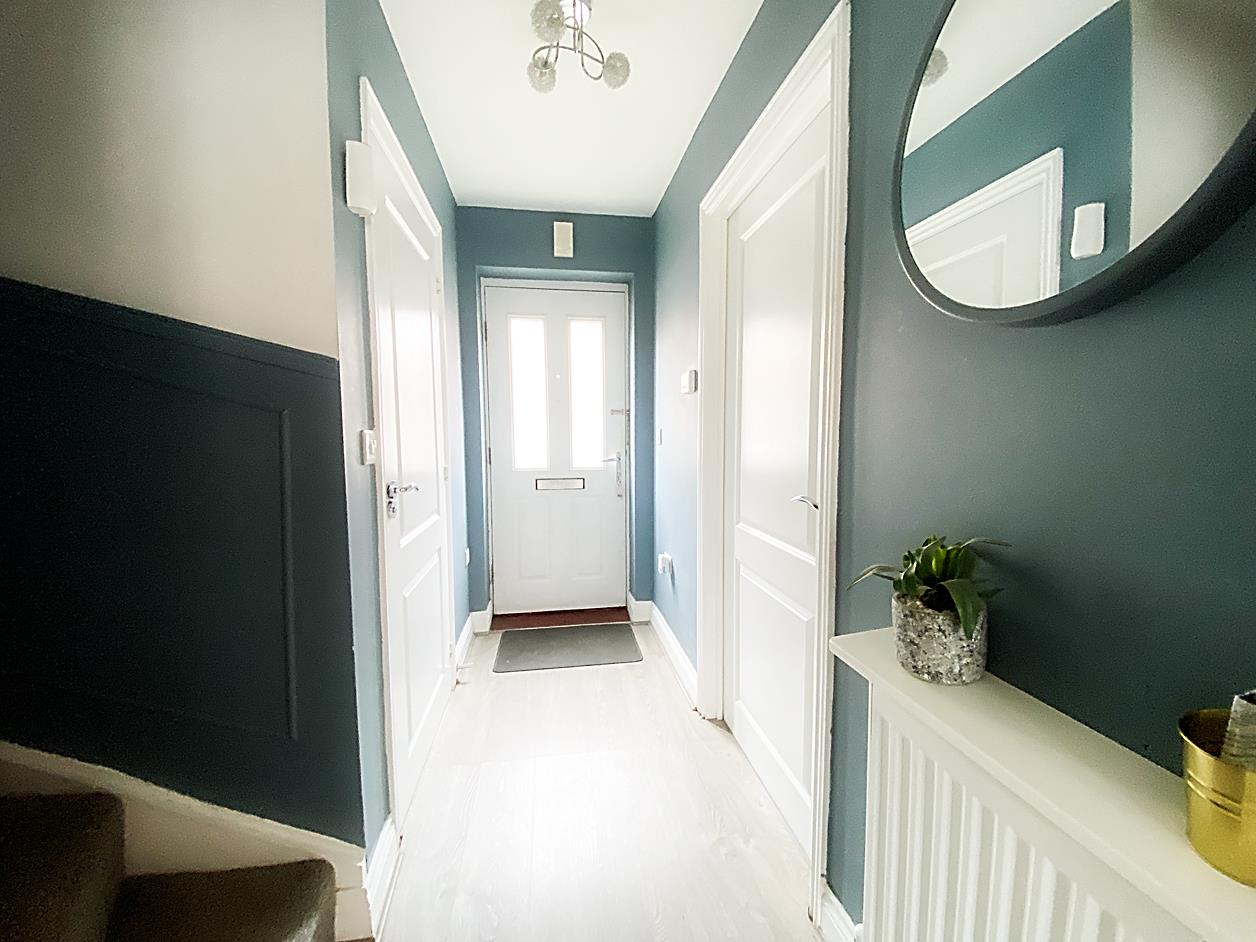 Hallway - Double glazed entrance door, laminate flooring, stairs to first floor landing, radiator.