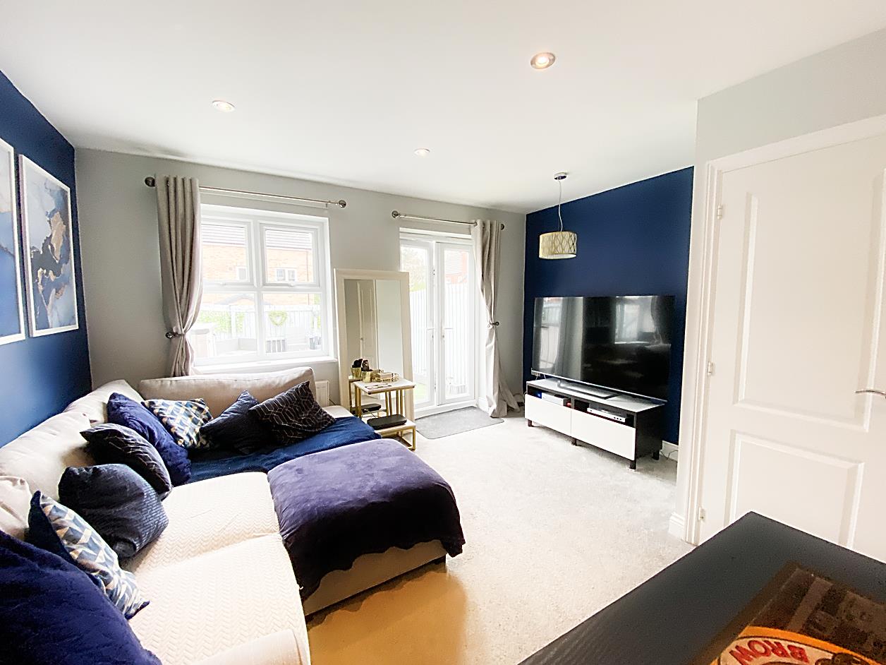 Lounge - 4.07 x 4.34 max - Double glazed window to the rear elevation, spot light's to ceiling, storage cupboard, radiator, double glazed French doors opening out to the rear garden.