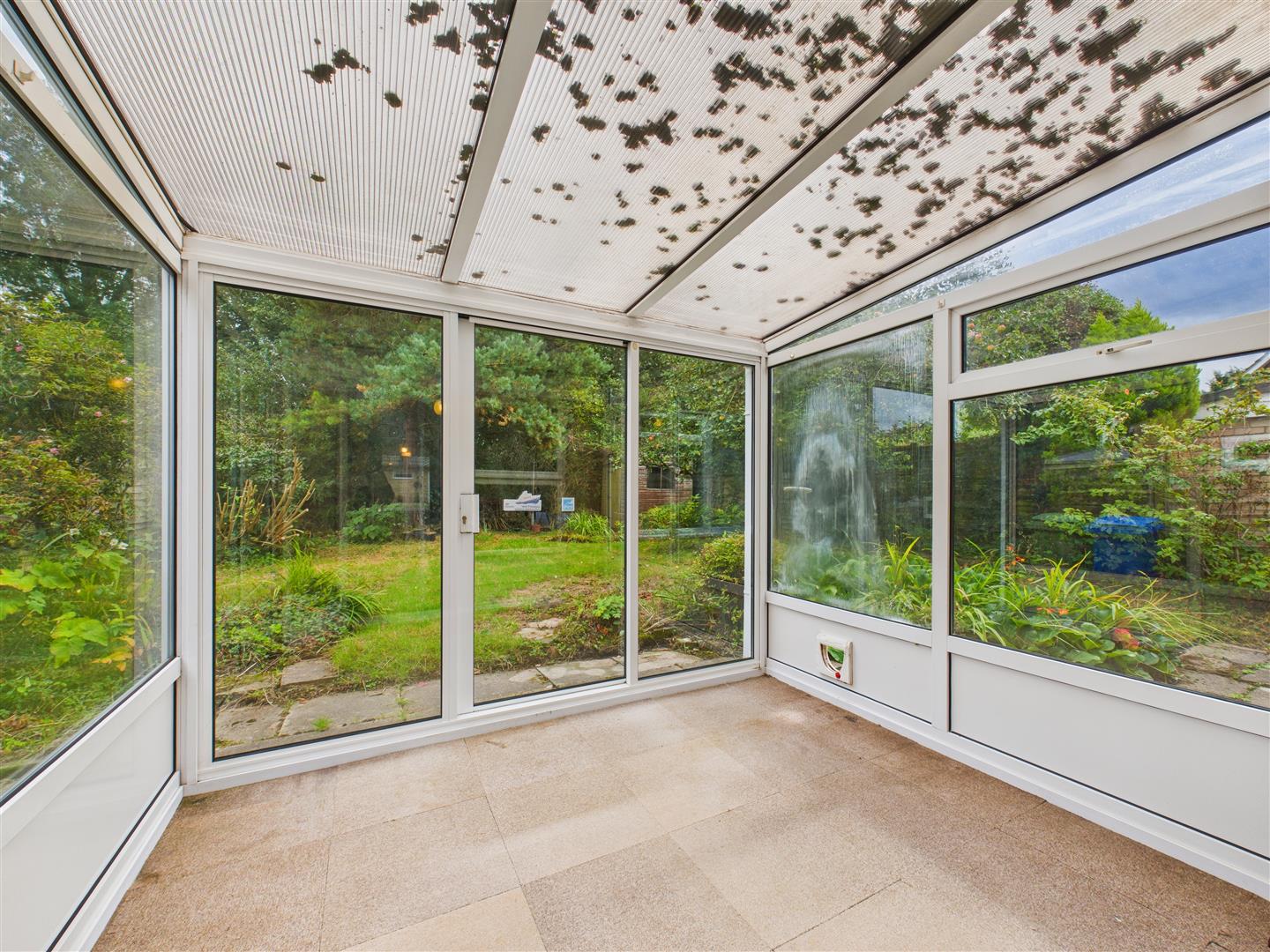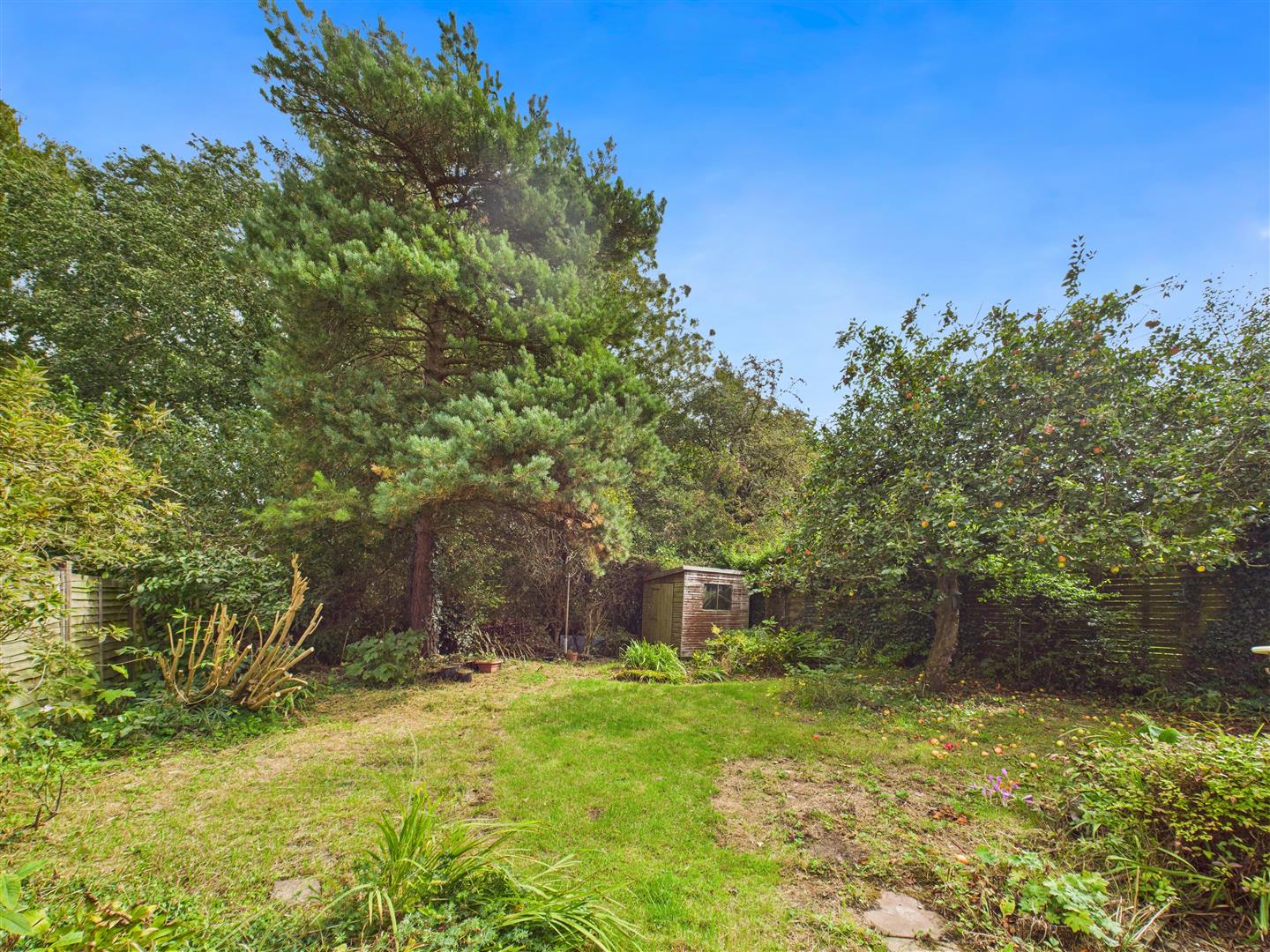 Outside - A garden with lawn and mature shrubbery lies to the rear of the property, with the space providing opportunity for extension. There is a lawn and driveway to the front of the property, leading to the adjoined garage space at the side. The driveway provides one off-street parking space.