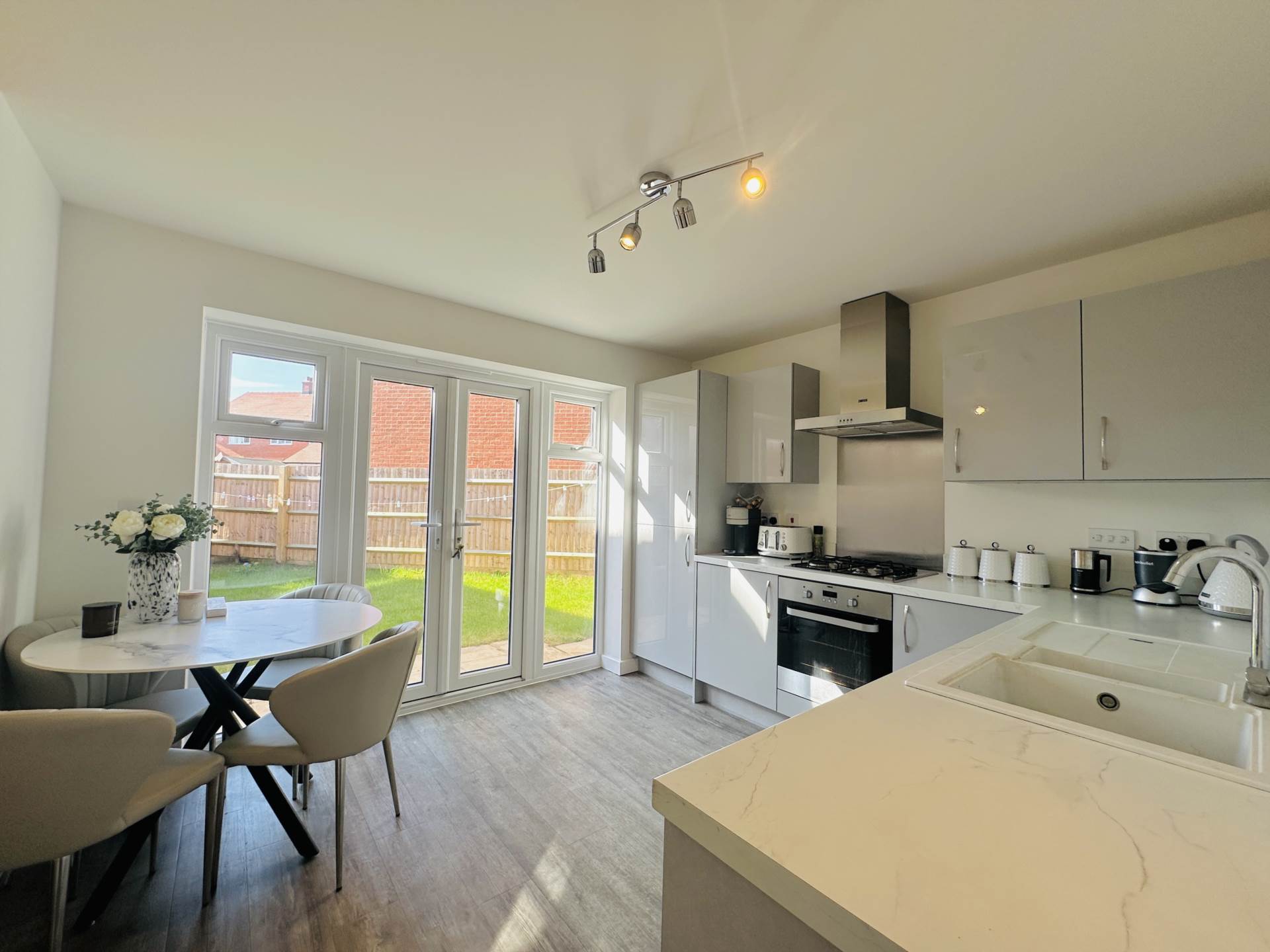 The property is an ideal first time or investment purchase with accommodation comprising; entrance hallway, modern kitchen/dining room with integrated appliances and French doors onto the rear garden, utility area, cloakroom, two double bedrooms with an en-suite and a family bathroom. There is driveway parking to the side of the property for two cars as well as a EV charging point. Side access leading to the rear garden which is laid mainly to lawn with a patio area and garden shed.