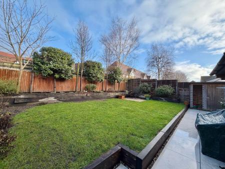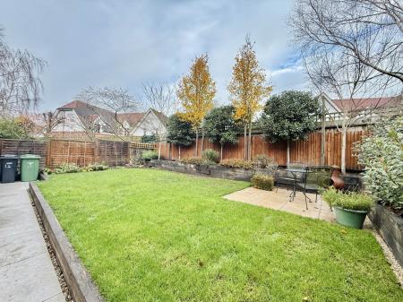 The rear garden has been thoughtfully landscaped, featuring two patio areas and a raised lawn, creating a private and usable outdoor space all year round. The property further benefits from gas central heating and double glazing throughout.