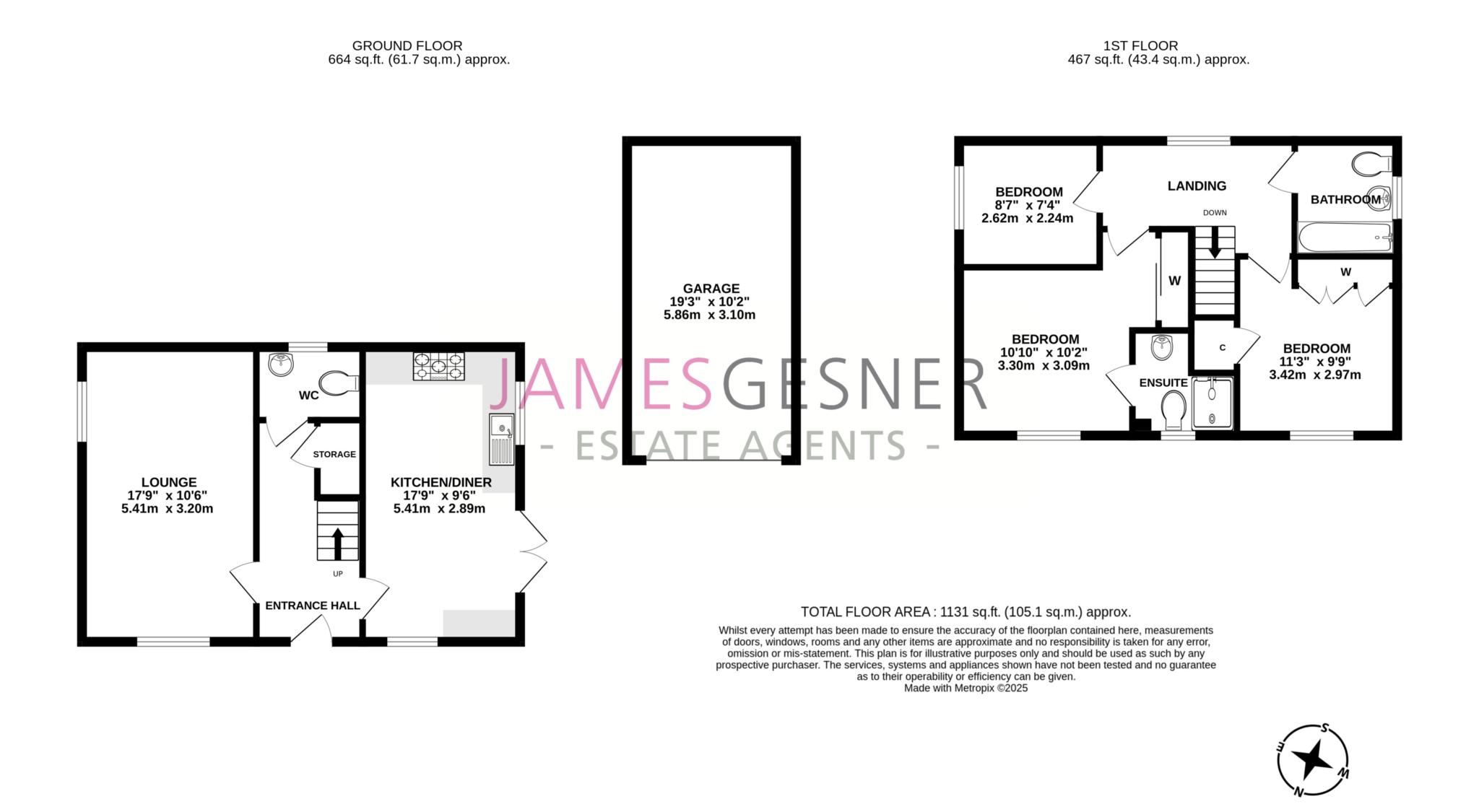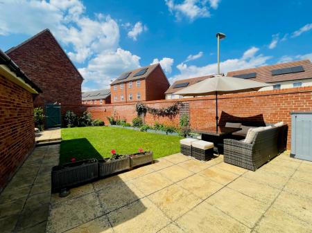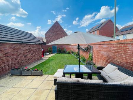 three bedrooms (two have fitted wardrobes), a family bathroom and an en-suite. Outside is a larger than average walled west facing rear garden with patio area and gated access to the driveway larger than average single garage.