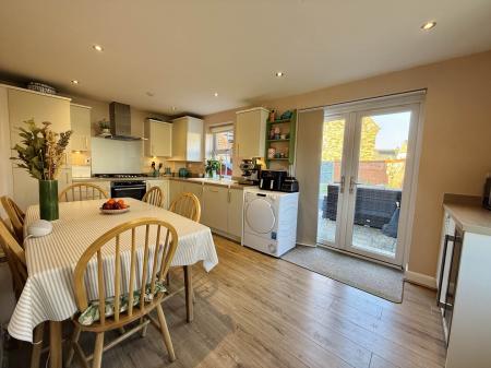 The property benefits from a spacious entrance hallway with cloakroom, leading to a 19` fully integrated double aspect kitchen/diner with French doors to the garden, 19` lounge,