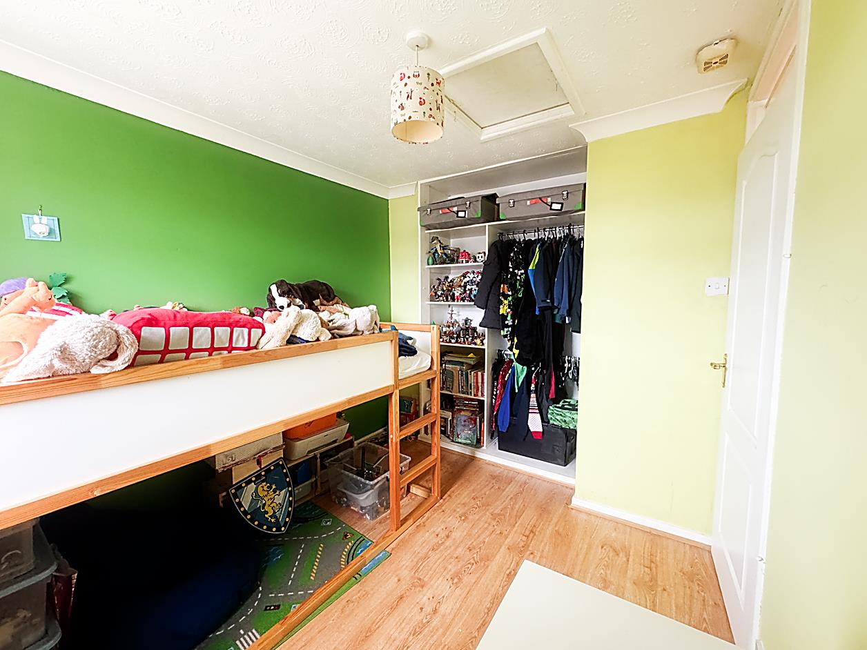 Bedroom Two - 9'4 x 7'11 - Double glazed window to the rear elevation, wood effect laminate flooring, built in wardrobe with open frontage, radiator and coving to ceiling.