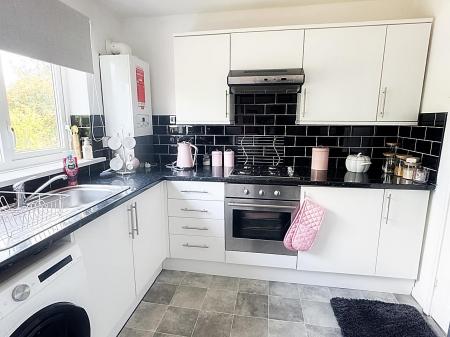 Kitchen - 2.97m x 2.31m - Fitted with a range of wall and base units, sink. Integrated electric oven and gas hob with extractor hood above. Plumbing and space for a washing machine. Tiled splashback. Radiator. Double glazed window to the rear.