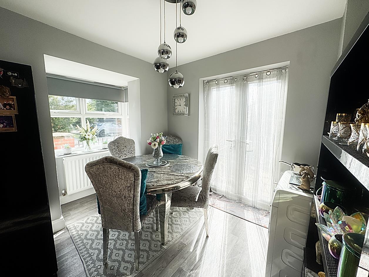 Breakfasting Kitchen - 2.49 x 3.55 - UPVc double glazed french doors to the rear garden, dining area to one side, and the kitchen is fitted with a range of floor and wall units, counters, sink and built in oven and hob with extractor hood.