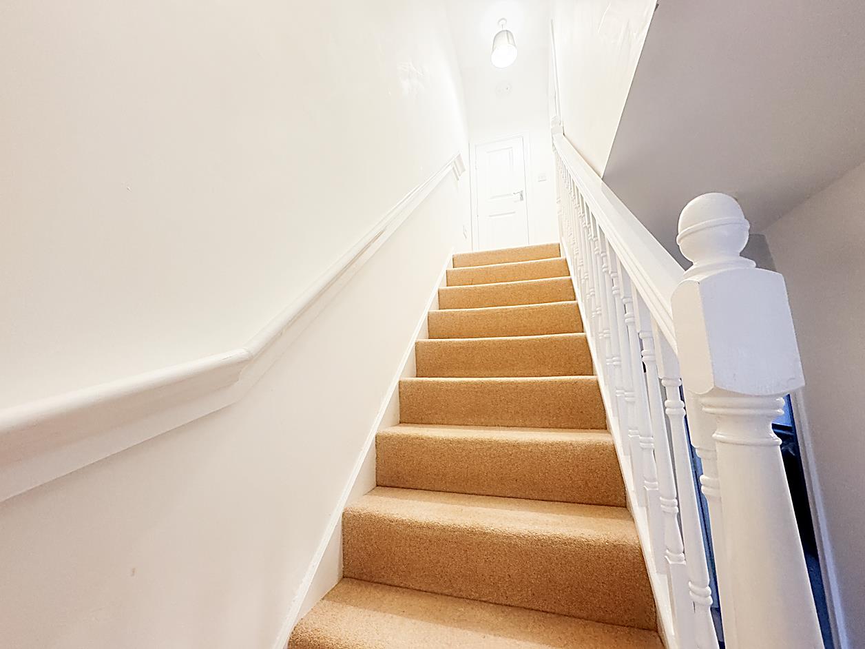 Stairs To Second Floor - Small landing with storage cupboard, leading to the top floor bedroom.