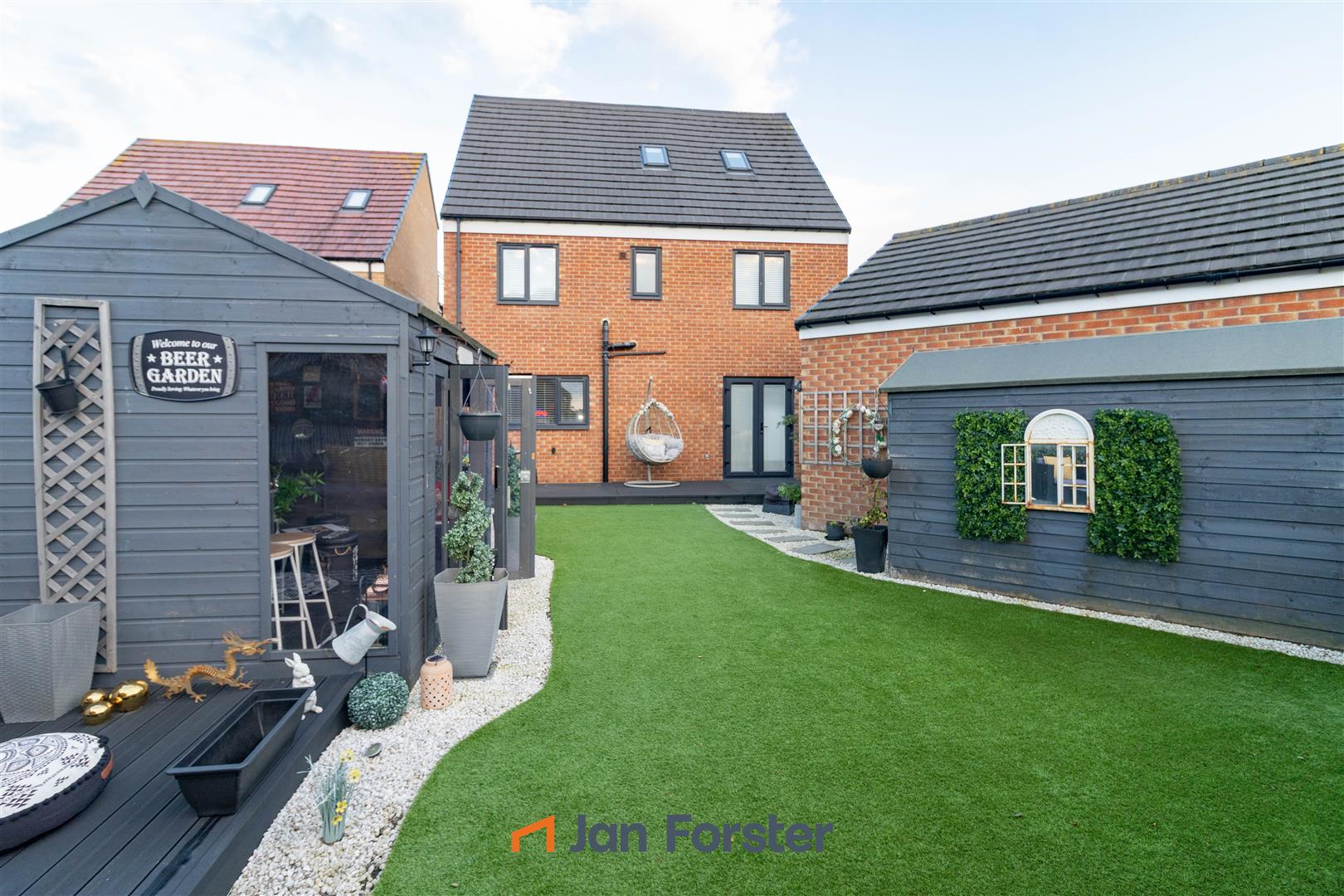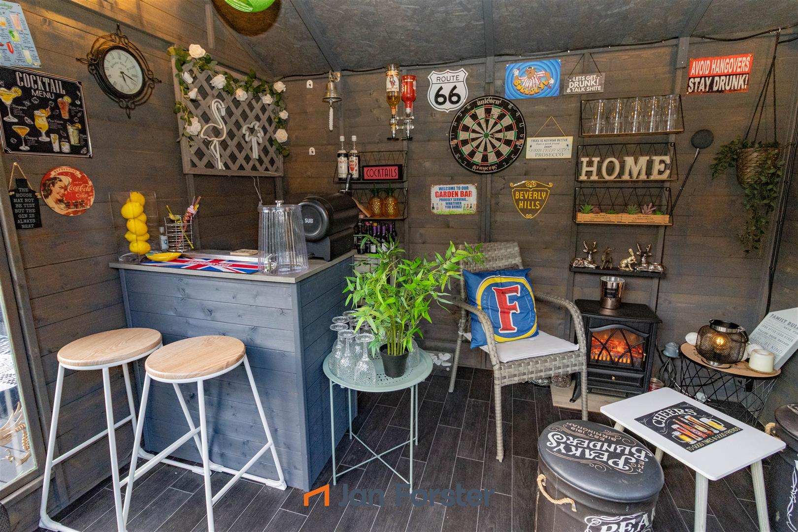 Externally, the home continues to impress. The rear garden features a patio area, a dedicated hot tub zone, and a stylish outdoor bar, with artificial grass for easy maintenance. There are also two garages, a double driveway, and attractive front and side gardens, offering ample space and excellent kerb appeal.