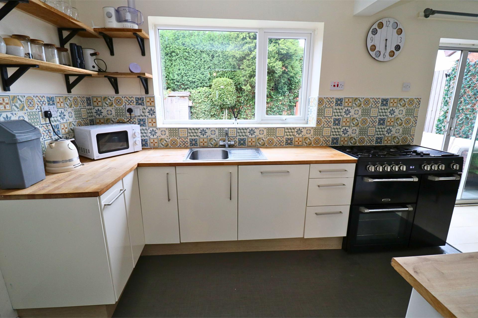 Having plumbing for washing machine and dryer, wall mounted boiler, radiator, ceiling light point, door out to garden and door off to garage.