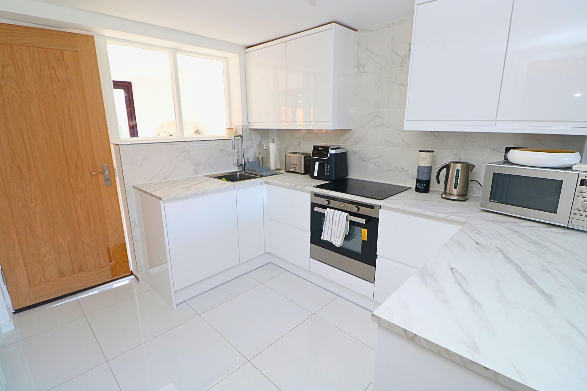 Having shower cubicle with shower, vanity wash hand basin, low flush W.C., work surfaces, plumbing for washer and dryer, wall mounted boiler, fully tiled walls, downlighters, double glazed obscure window to rear and radiator.