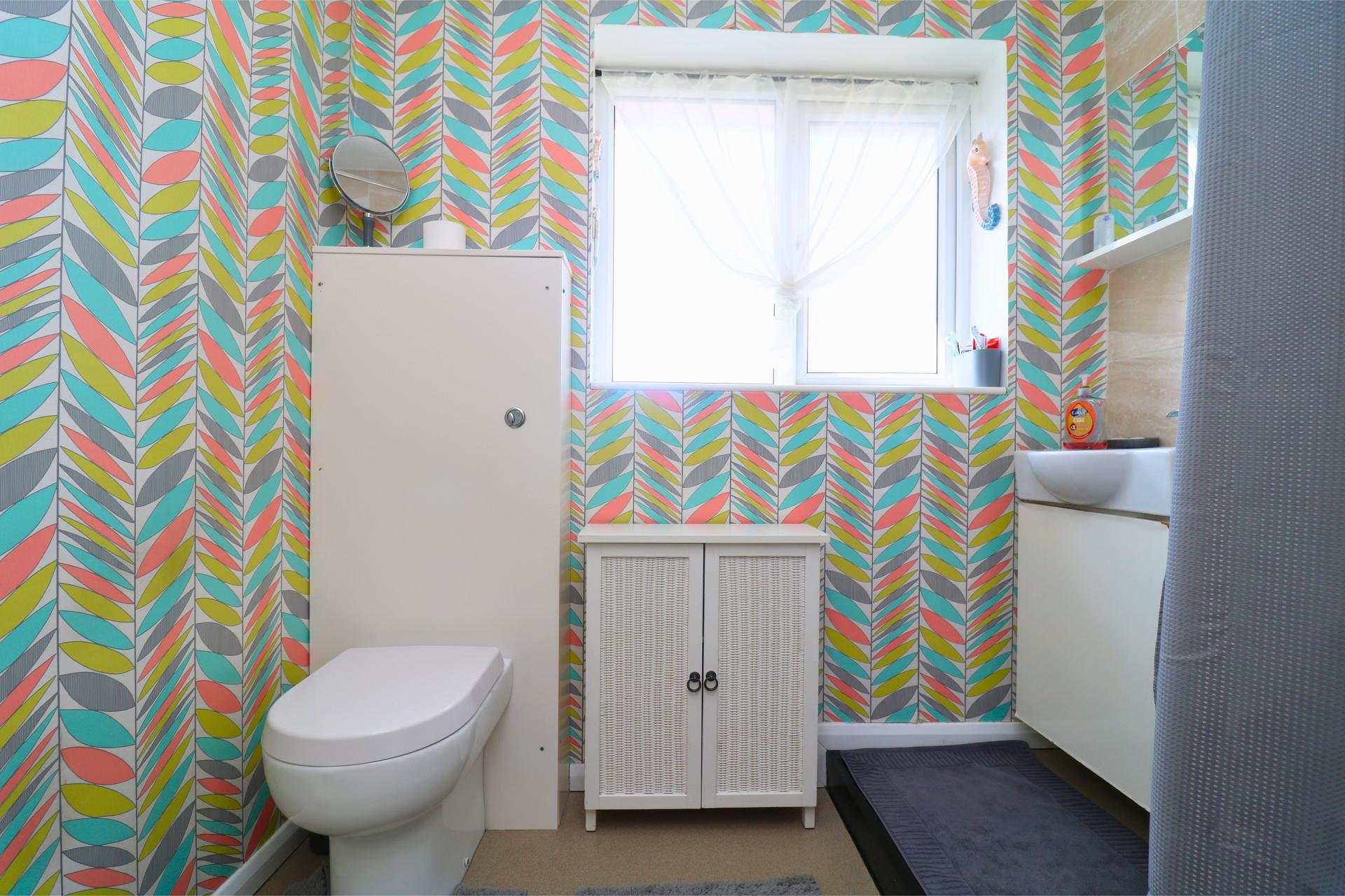 Having bath, vanity wash hand basin, low flush WC, part tiled walls, obscure double glazed window to rear, radiator and ceiling light point.