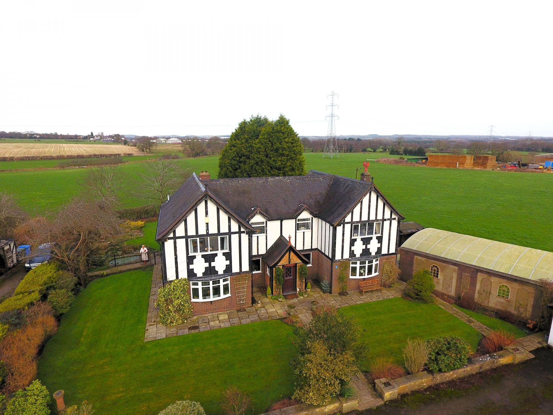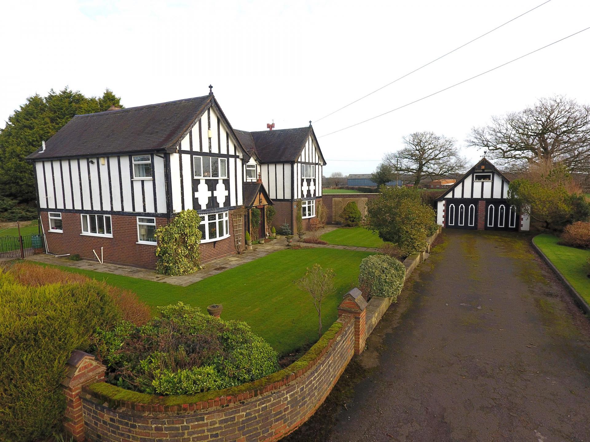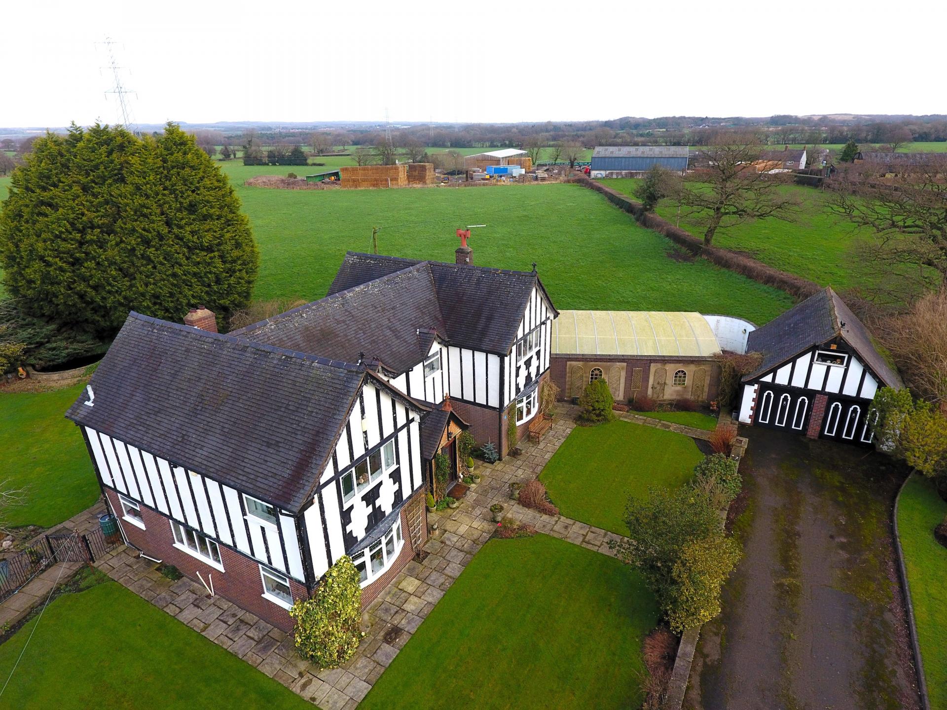 Located at the end of a private driveway, surrounded by farmland, with uninterrupted panoramic views across open farmland, this mock Tudor country manor house offers truly spacious oil fired centrally heated accommodation which would make an ideal purchase for a growing family.