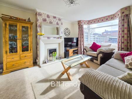4.52m max into bay x 3.65m (14' 10" max into bay x 12' 0") having double glazed walk-in bay window to front, radiator and a feature and focal point fireplace having contemporary hearth, inset, surround and mantel above housing a stainless steel gas fire.