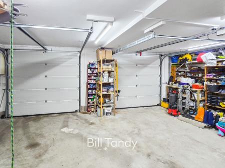 8.76m max x 7.96m max (28' 9" max x 26' 1" max) this good sized garage is ideal for two to three cars, depending on their size, and is approached via two insulated electrically operated higher than normal entrance doors. The garage has an abundance of lighting, power supply, radiator, utility area and door to utility.