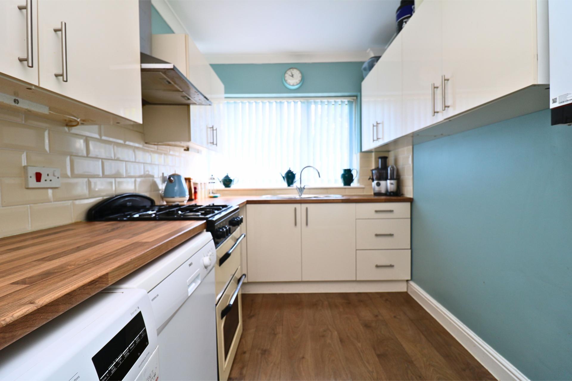 Having a range of wall base cupboard units, sink with single drainer, mixer tap over, double glazed window to rear, space for cooker, plumbing for washing machine, wall mounted boiler, ceiling light point and door leading to outside.